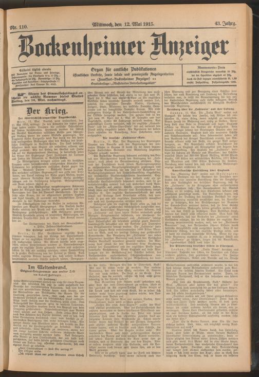 Regionale Zeitungen aus der Zeit des Ersten Weltkrieges