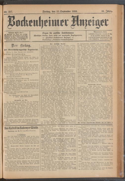 Regionale Zeitungen aus der Zeit des Ersten Weltkrieges