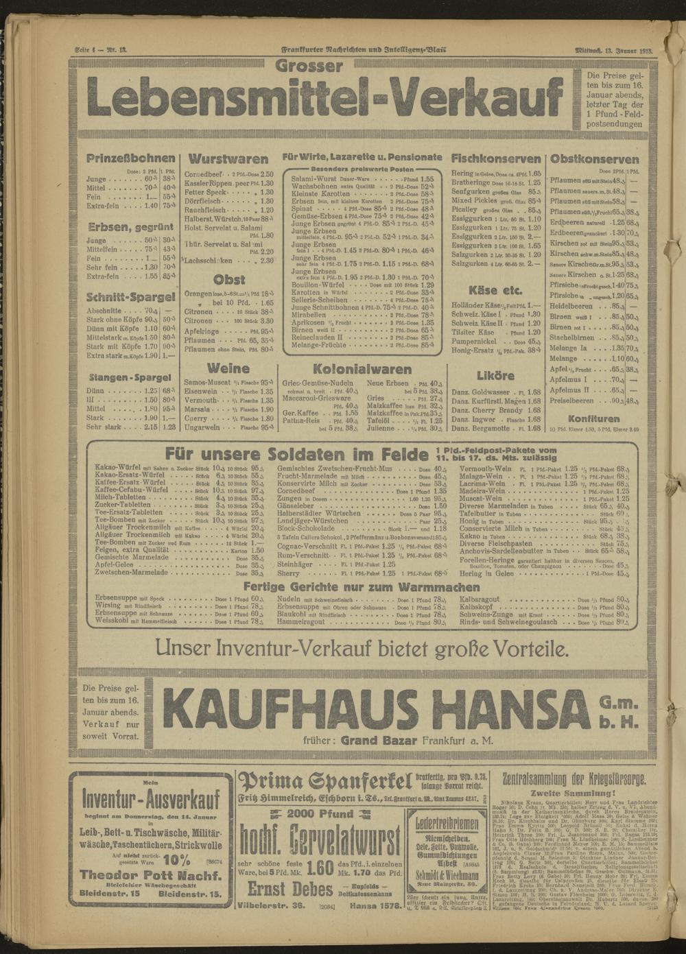 Frankfurter Nachrichten und Intelligenzblatt. 1914-1918