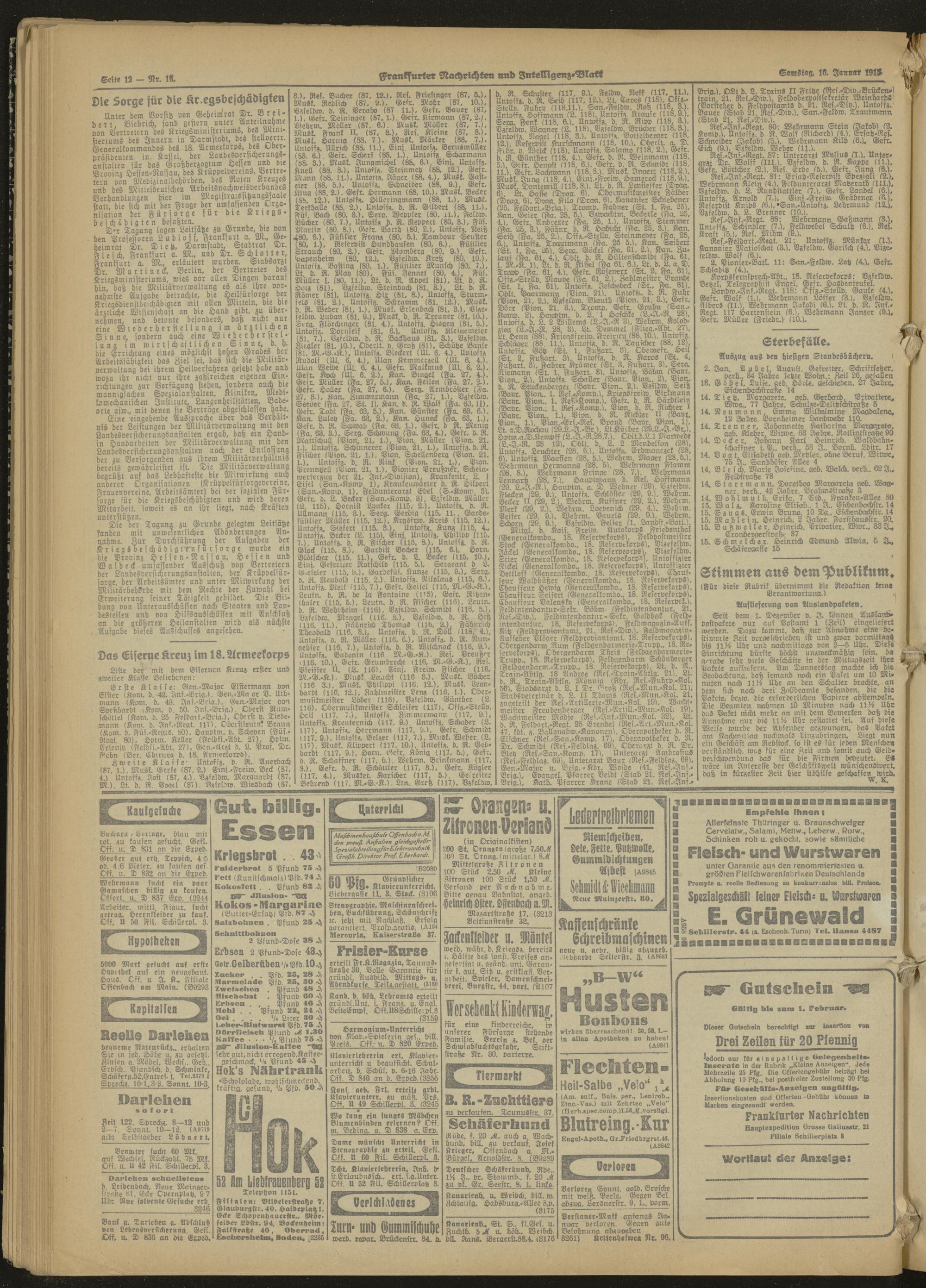 Frankfurter Nachrichten und Intelligenzblatt. 1914-1918