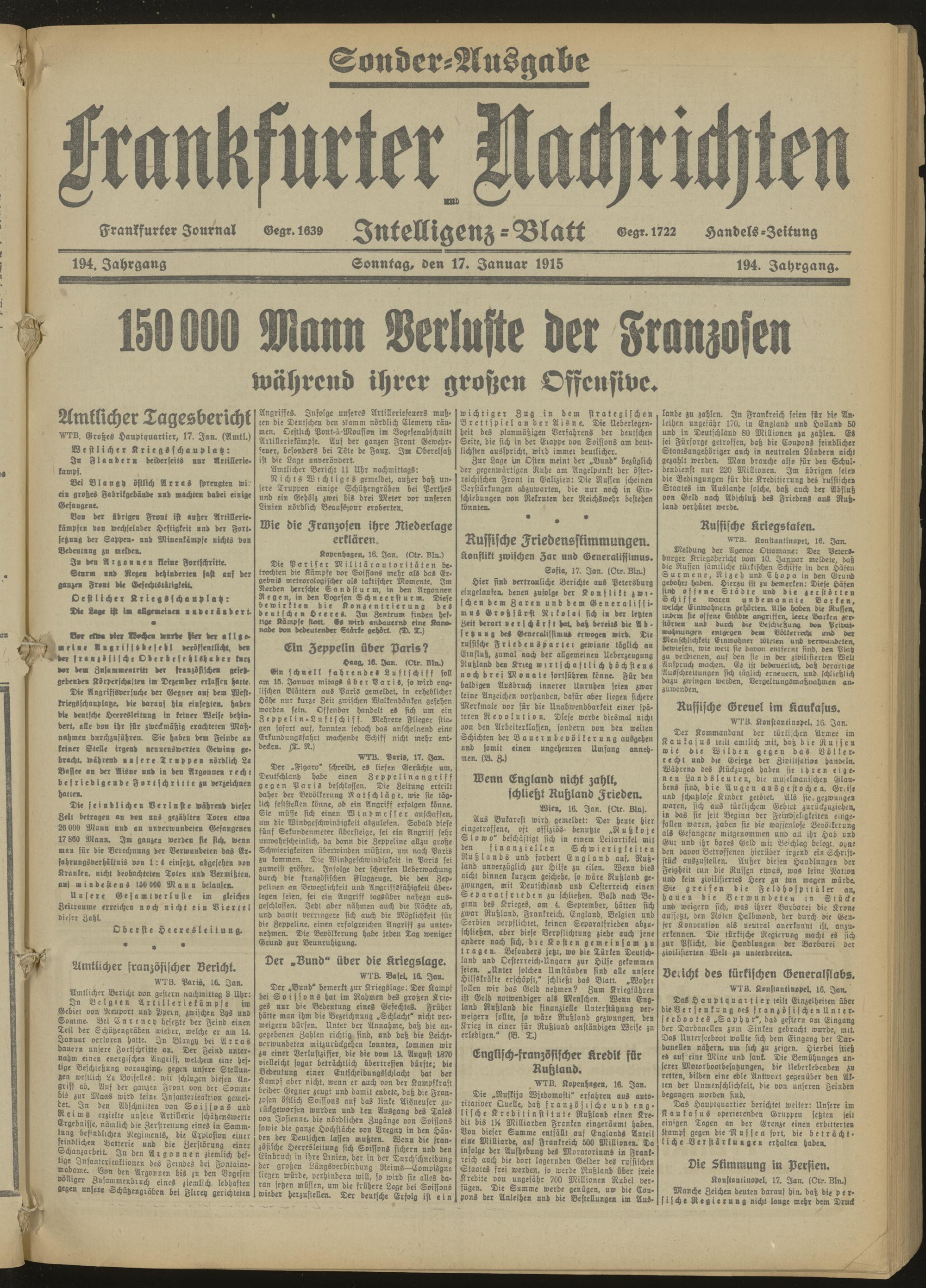 Frankfurter Nachrichten und Intelligenzblatt. 1914-1918