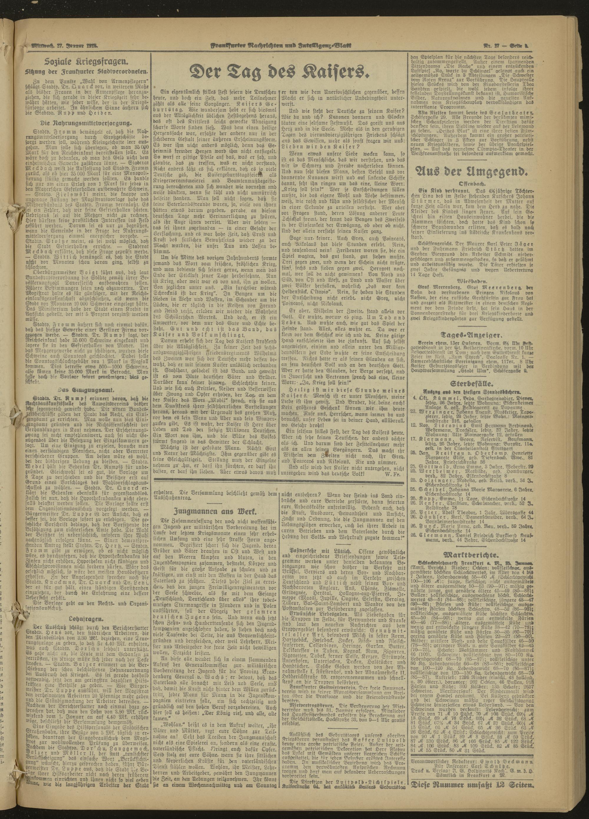 Frankfurter Nachrichten und Intelligenzblatt. 1914-1918