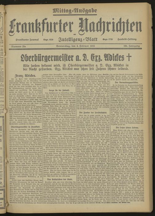 Frankfurter Nachrichten und Intelligenzblatt. 1914-1918