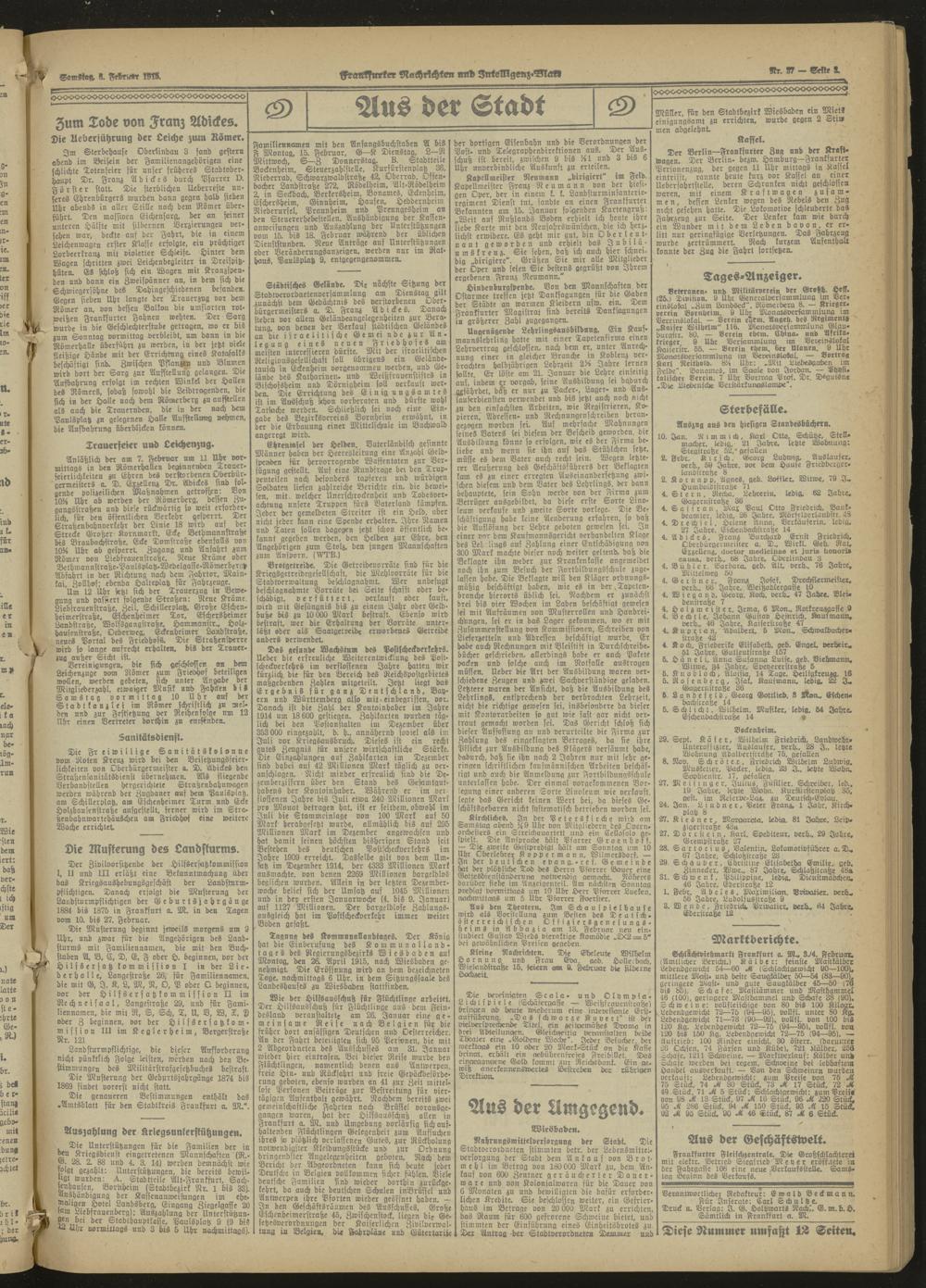 Frankfurter Nachrichten und Intelligenzblatt. 1914-1918