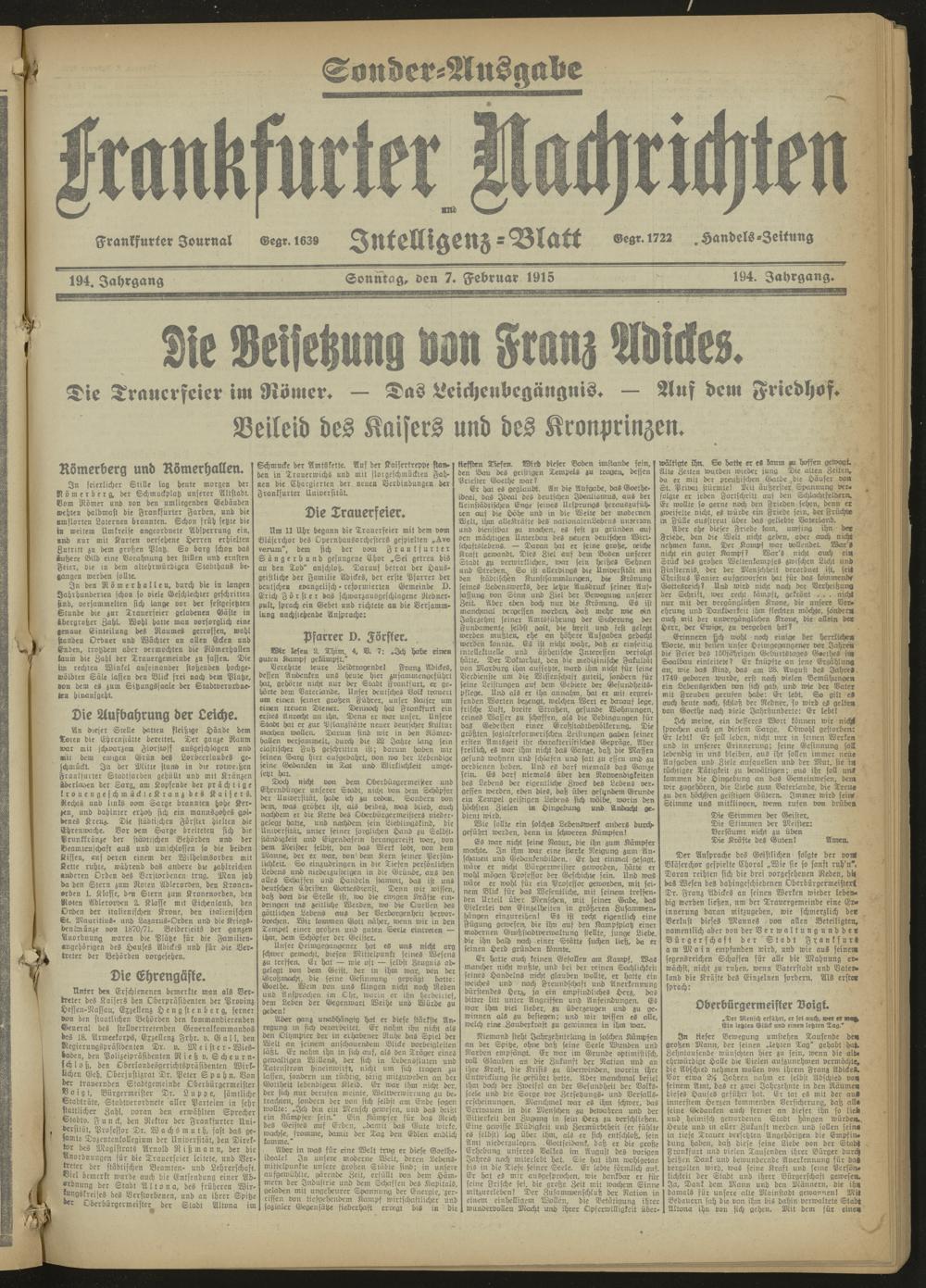 07.02.1915 Sonder-Ausgabe