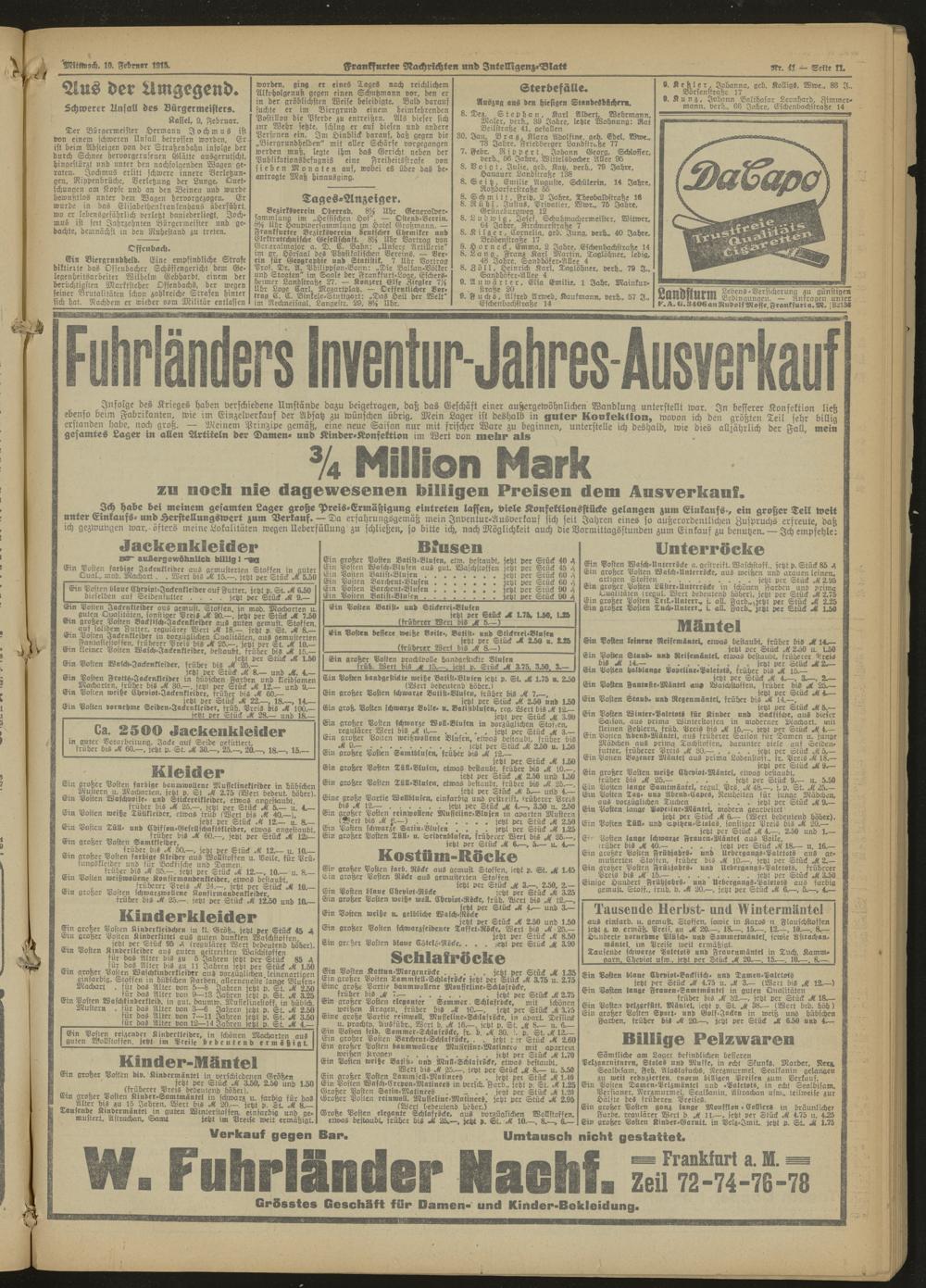 Frankfurter Nachrichten und Intelligenzblatt. 1914-1918