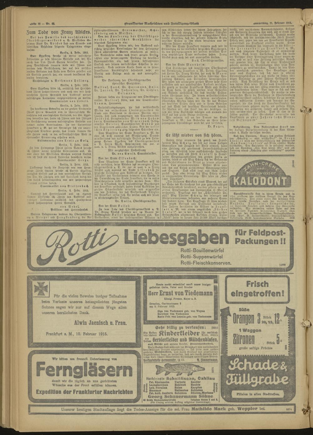 Frankfurter Nachrichten und Intelligenzblatt. 1914-1918