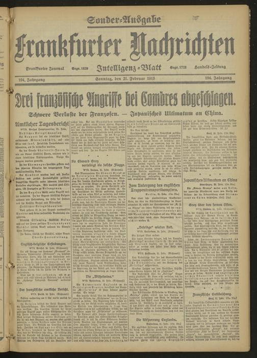 Frankfurter Nachrichten und Intelligenzblatt. 1914-1918