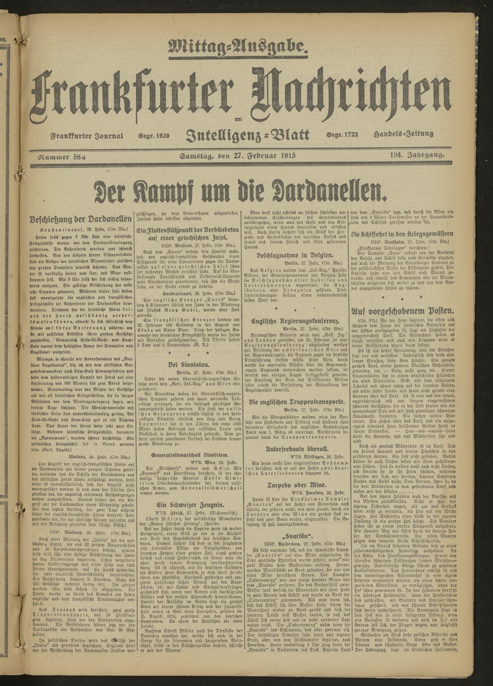 27.02.1915 Mittag-Ausgabe = Nr. 58a