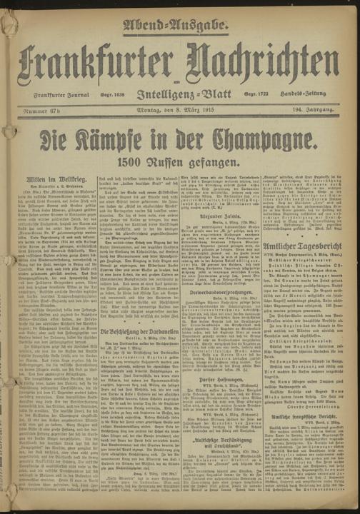 Frankfurter Nachrichten und Intelligenzblatt. 1914-1918