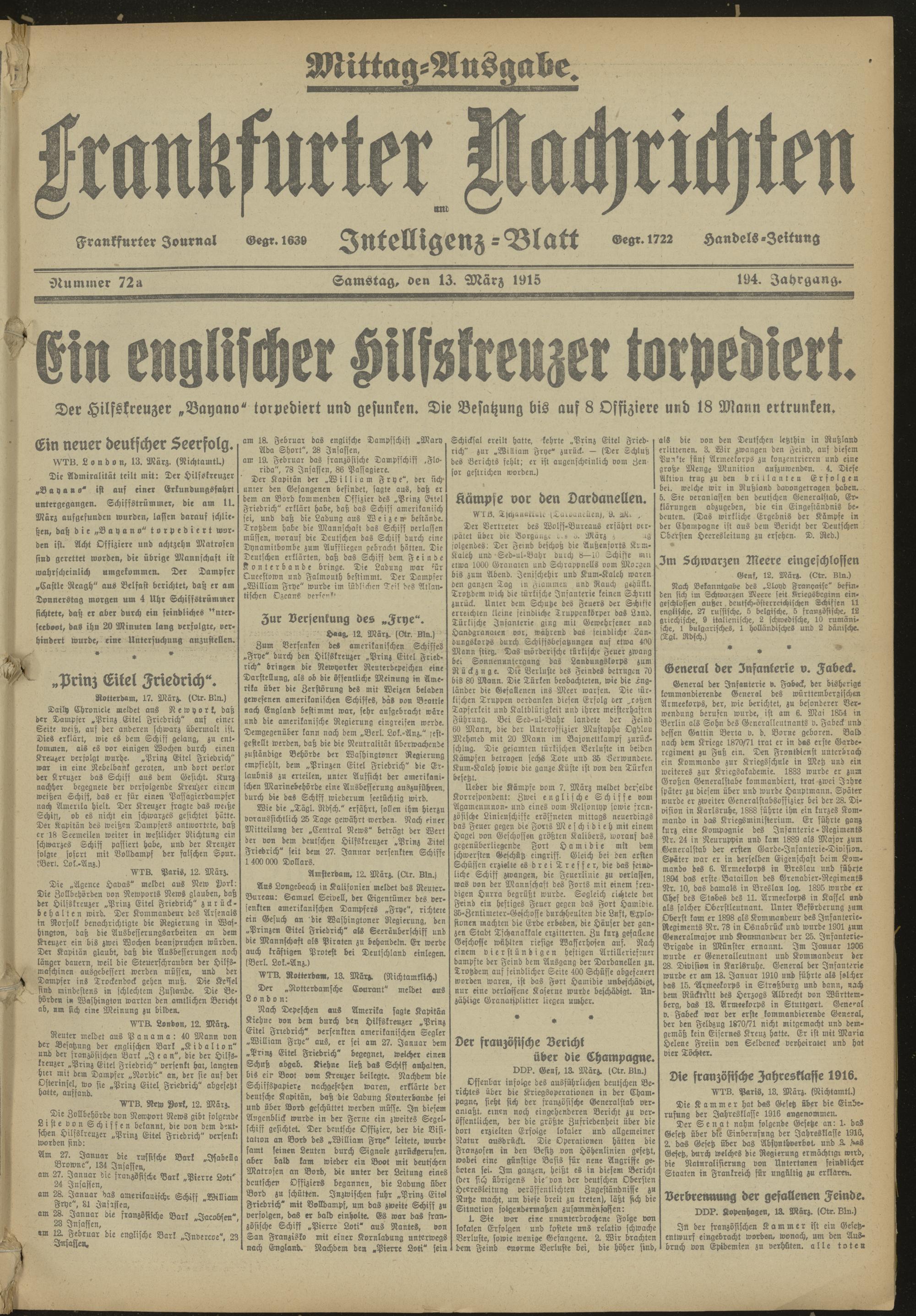 13.03.1915 Mittag-Ausgabe = Nr. 72 a