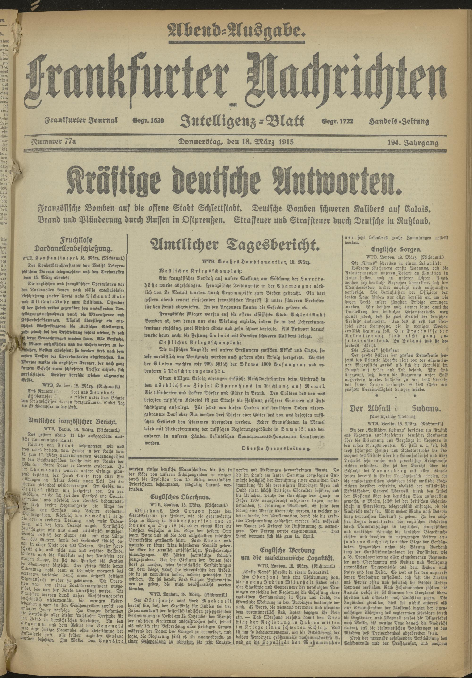 18.03.1915 Abend-Ausgabe = Nr. 77 b [fälschlich 77 a num.]