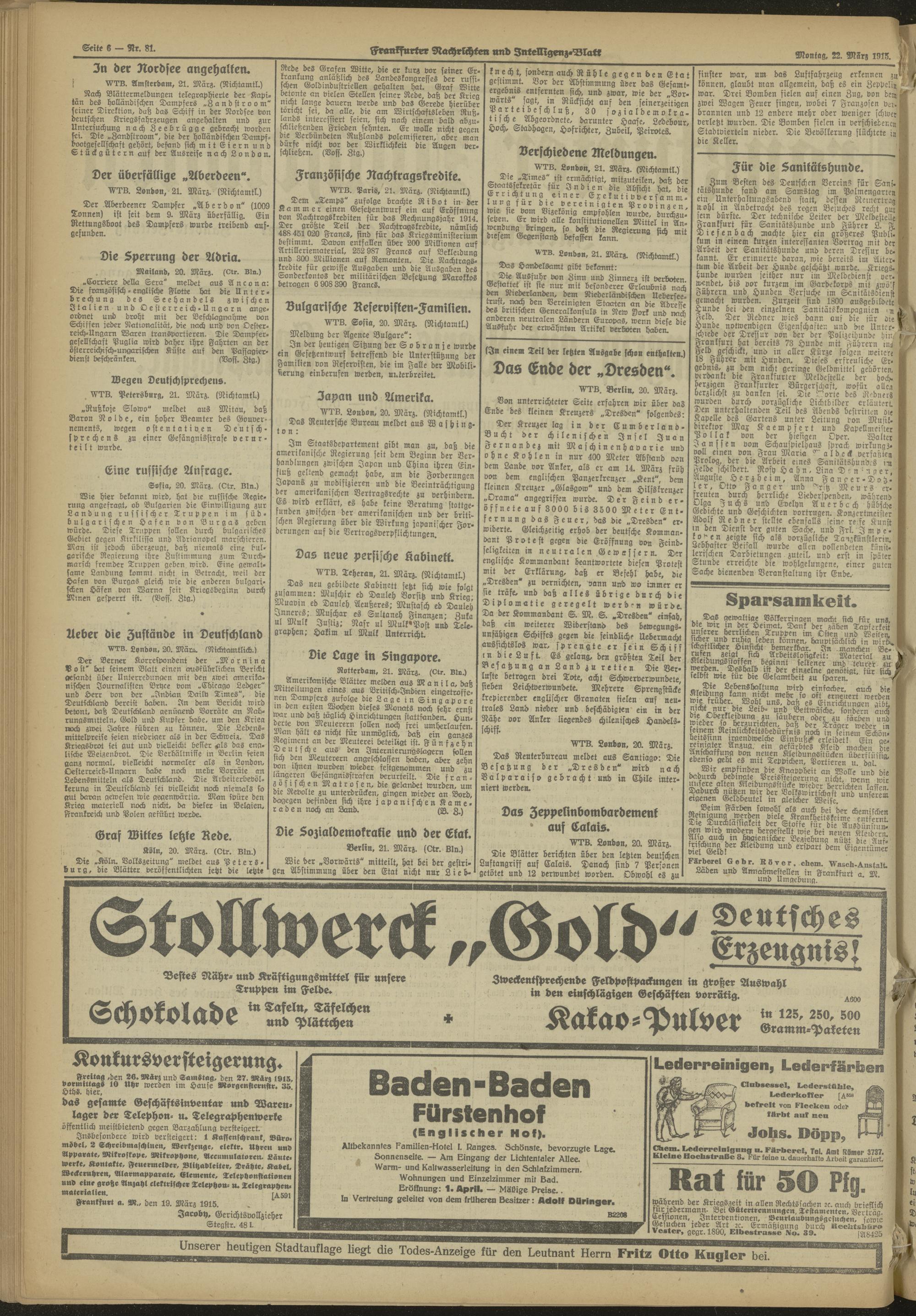 Frankfurter Nachrichten und Intelligenzblatt. 1914-1918