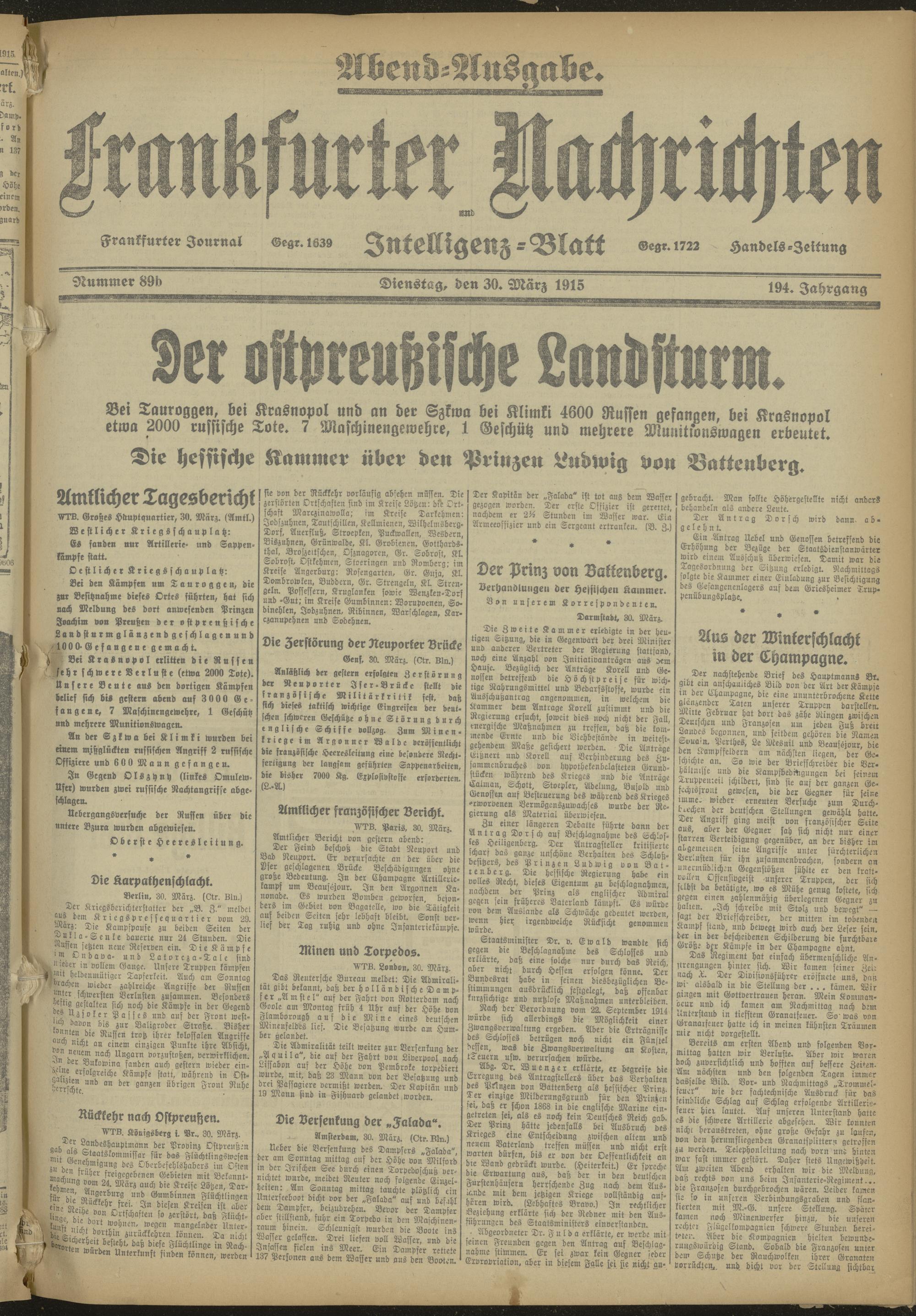 30.03.1915 Abend-Ausgabe = Nr. 89 b