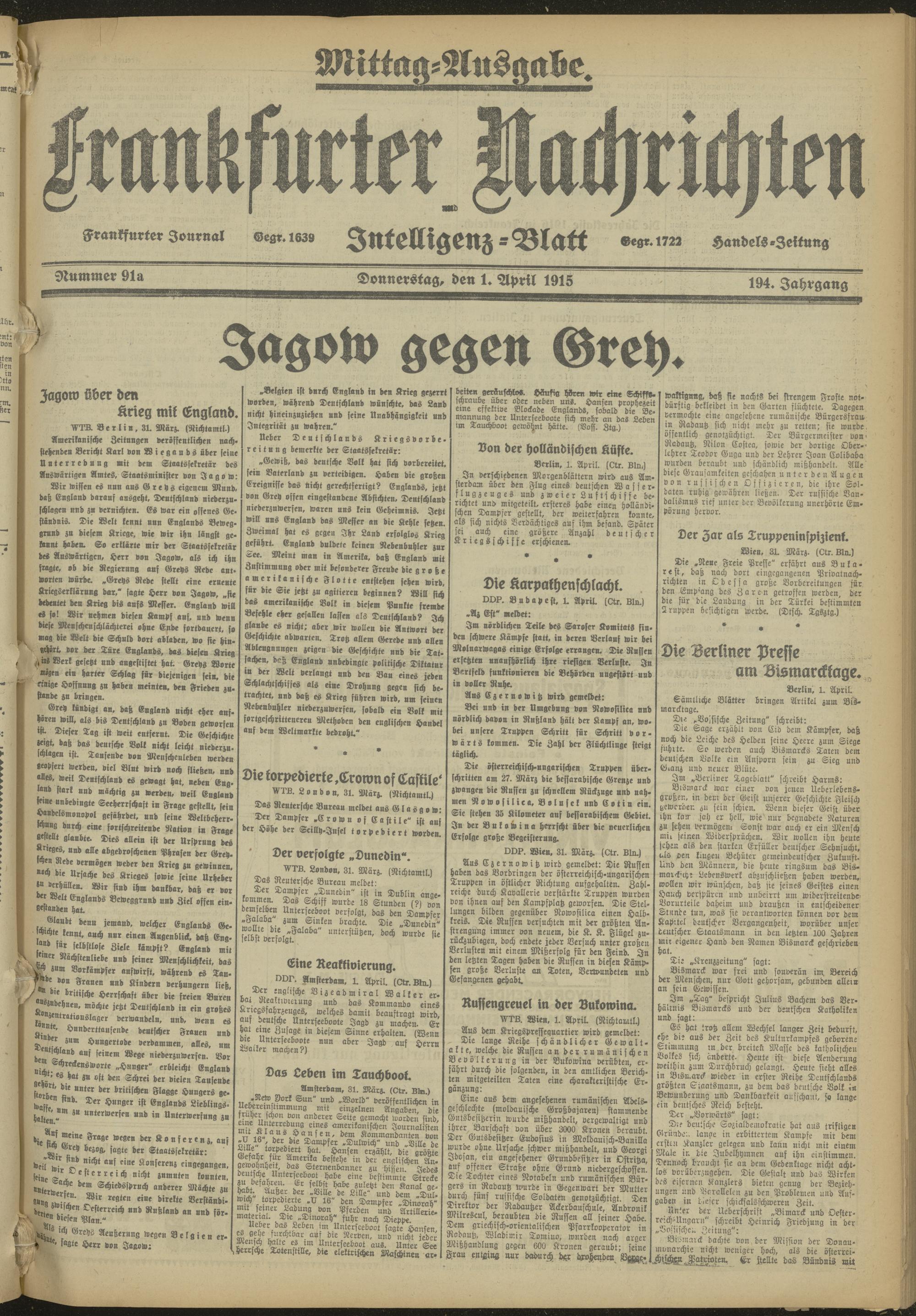 01.04.1915 Mittag-Ausgabe = Nr. 91 a