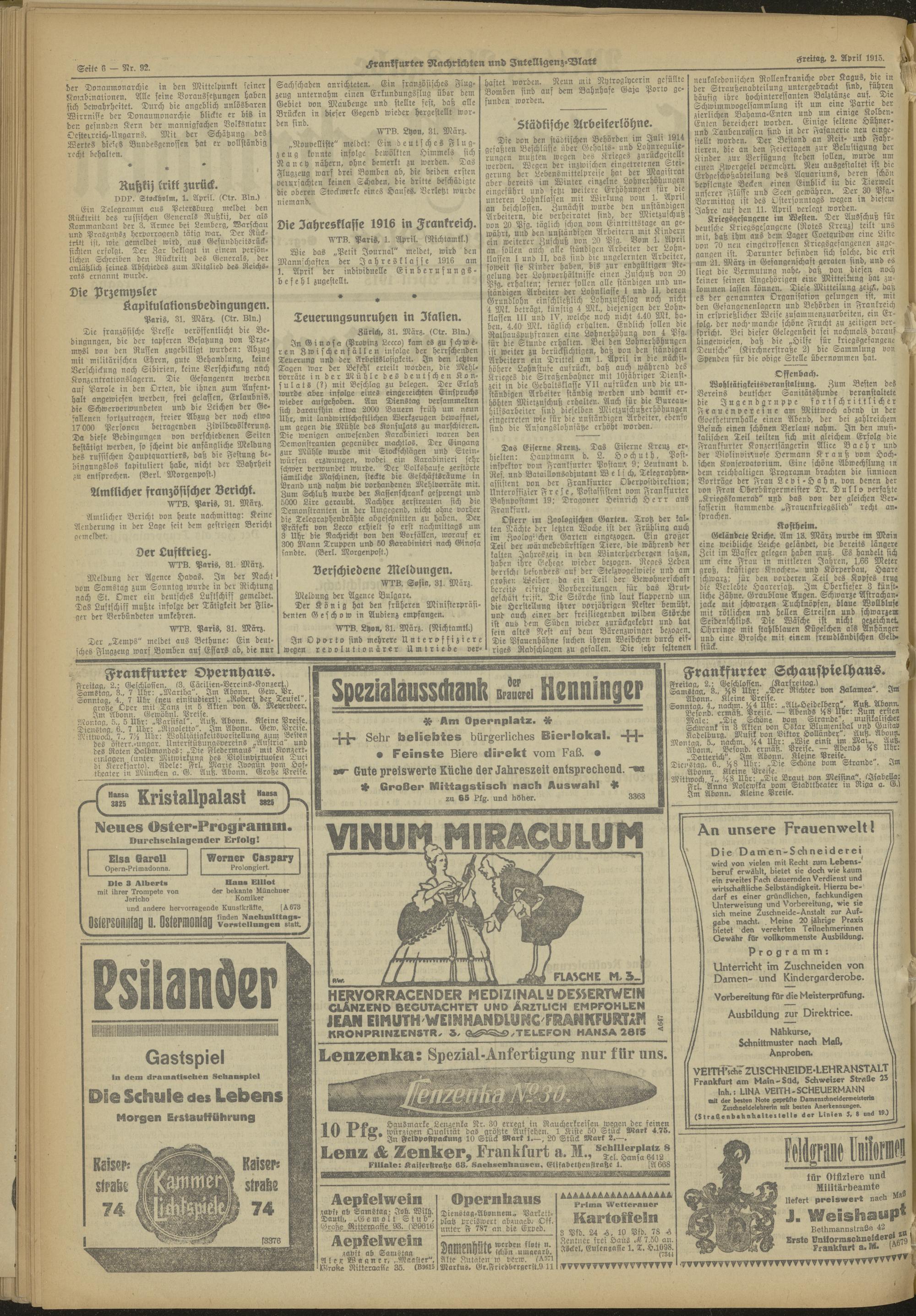 01.04.1915 Mittag-Ausgabe = Nr. 91 a