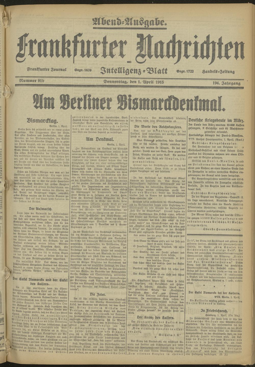 01.04.1915 Abend-Ausgabe = Nr. 91 b