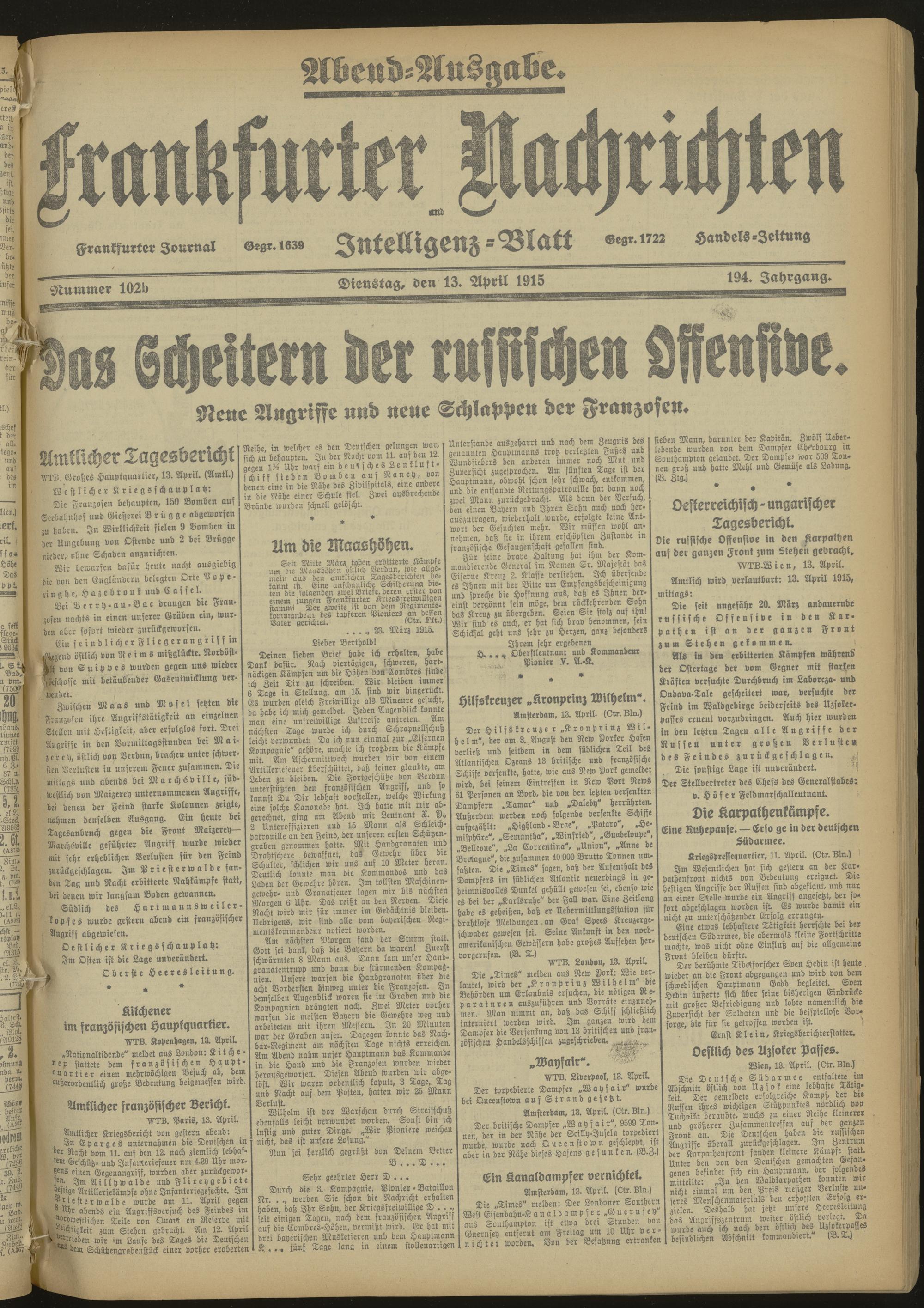 13.04.1915 Abend-Ausgabe = Nr. 102 b