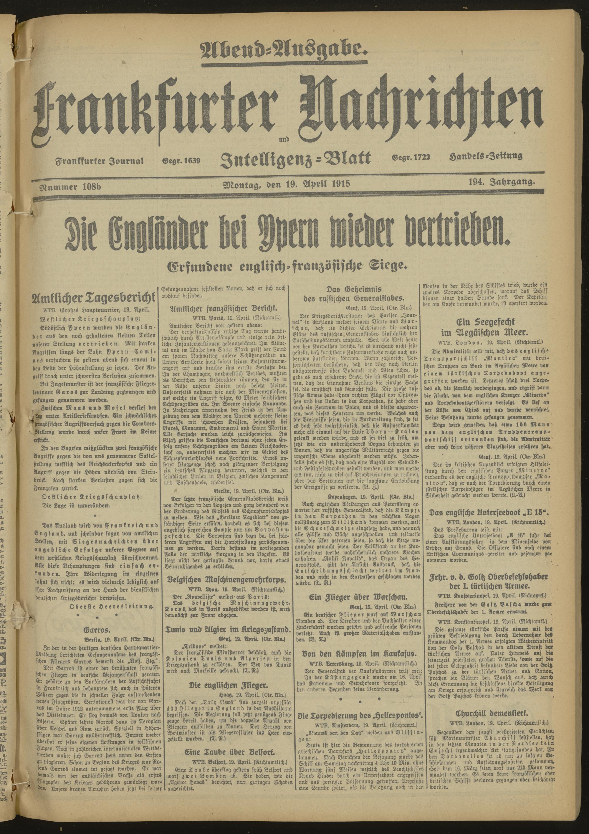 19.04.1915 Abend-Ausgabe = Nr. 108 b