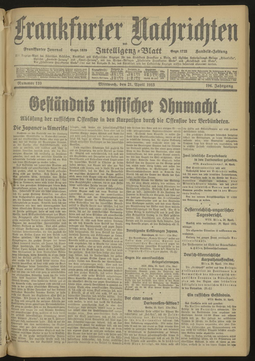 Frankfurter Nachrichten und Intelligenzblatt. 1914-1918