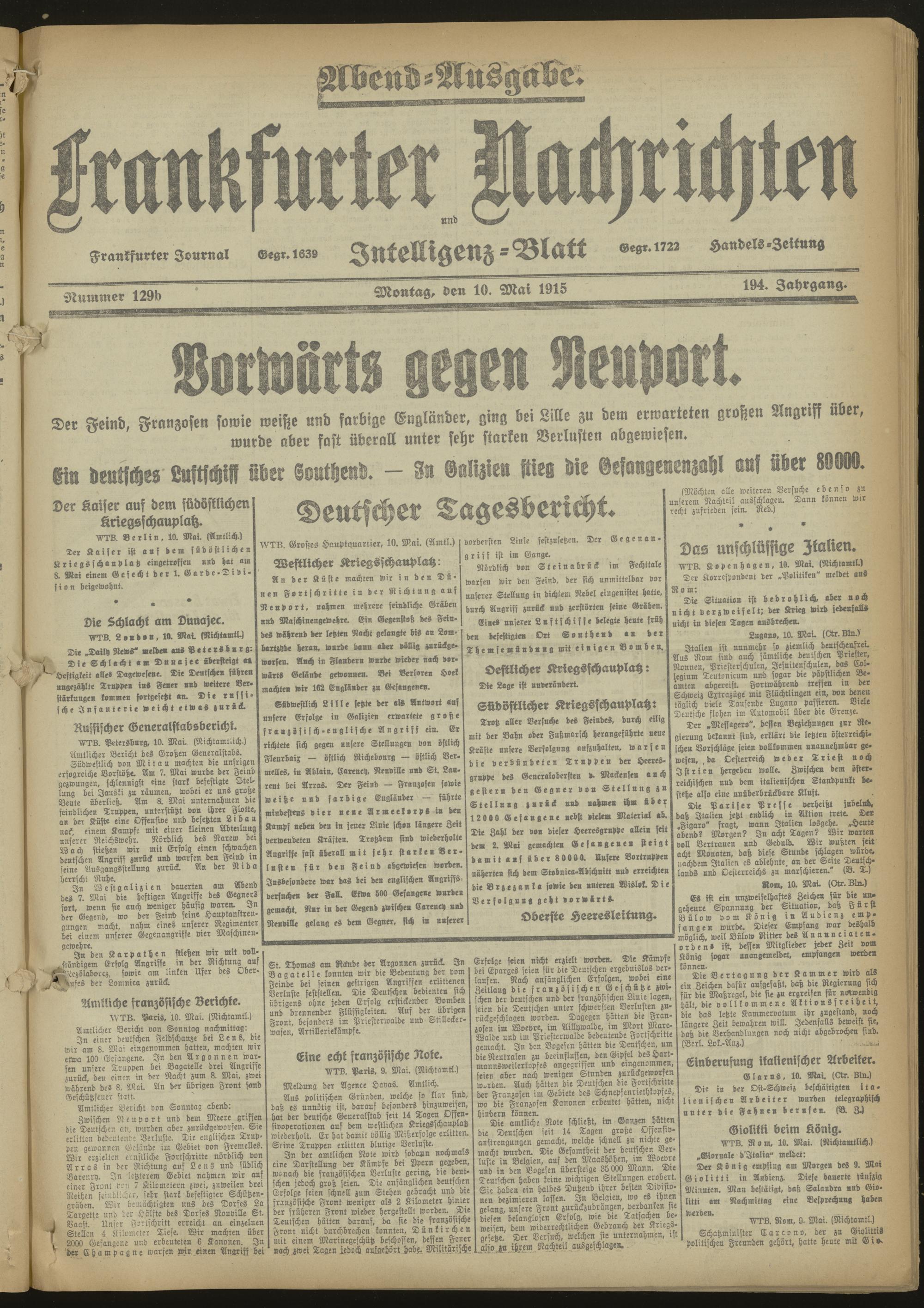10.05.1915 Abend-Ausgabe = Nr. 129 b