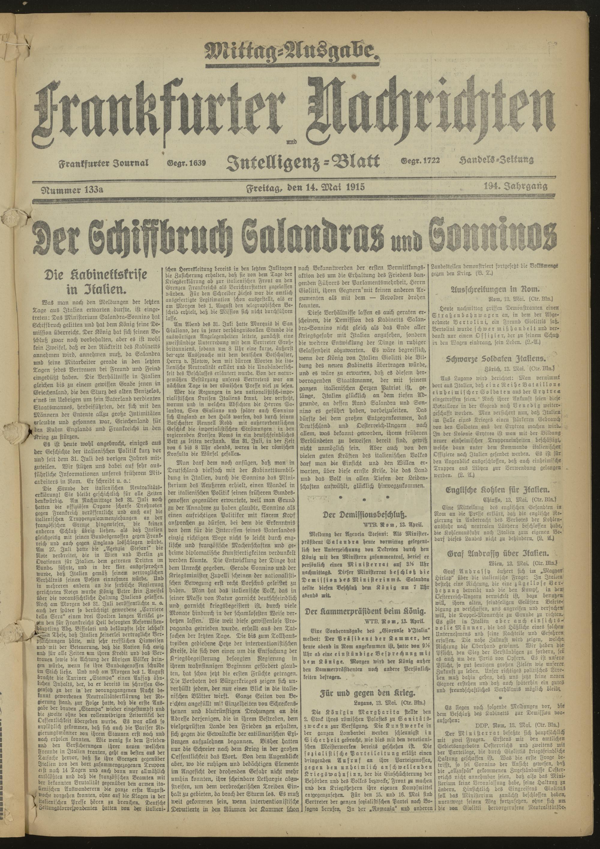 14.05.1915 Mittag-Ausgabe = Nr. 133 a