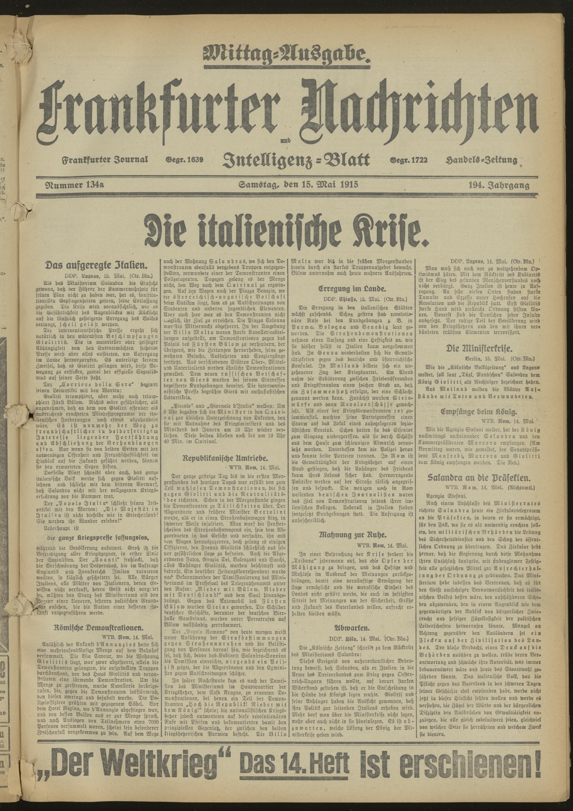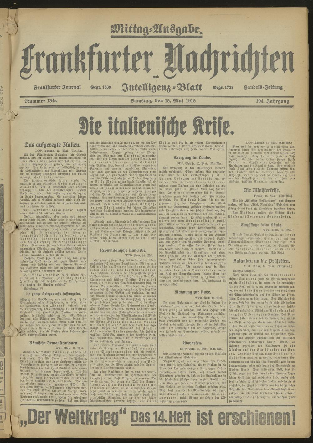 15.05.1915 Mittag-Ausgabe = Nr. 134 a