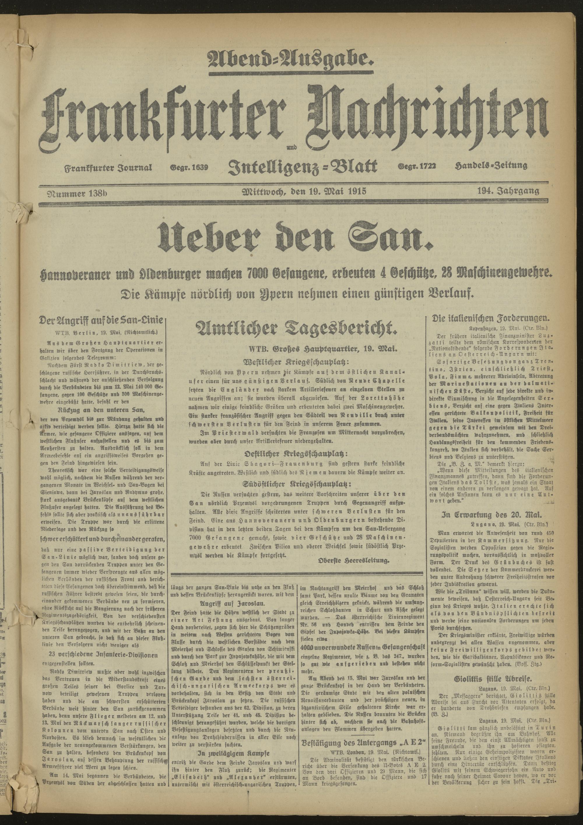 19.05.1915 Abend-Ausgabe = Nr. 138 b