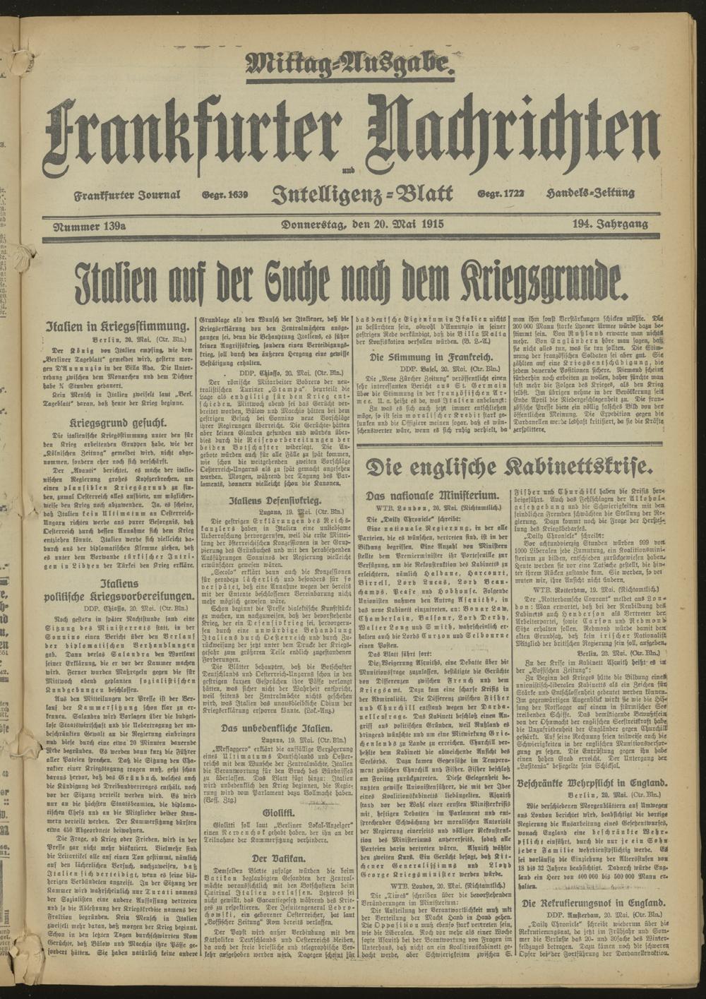 20.05.1915 Mittag-Ausgabe = Nr. 139 a