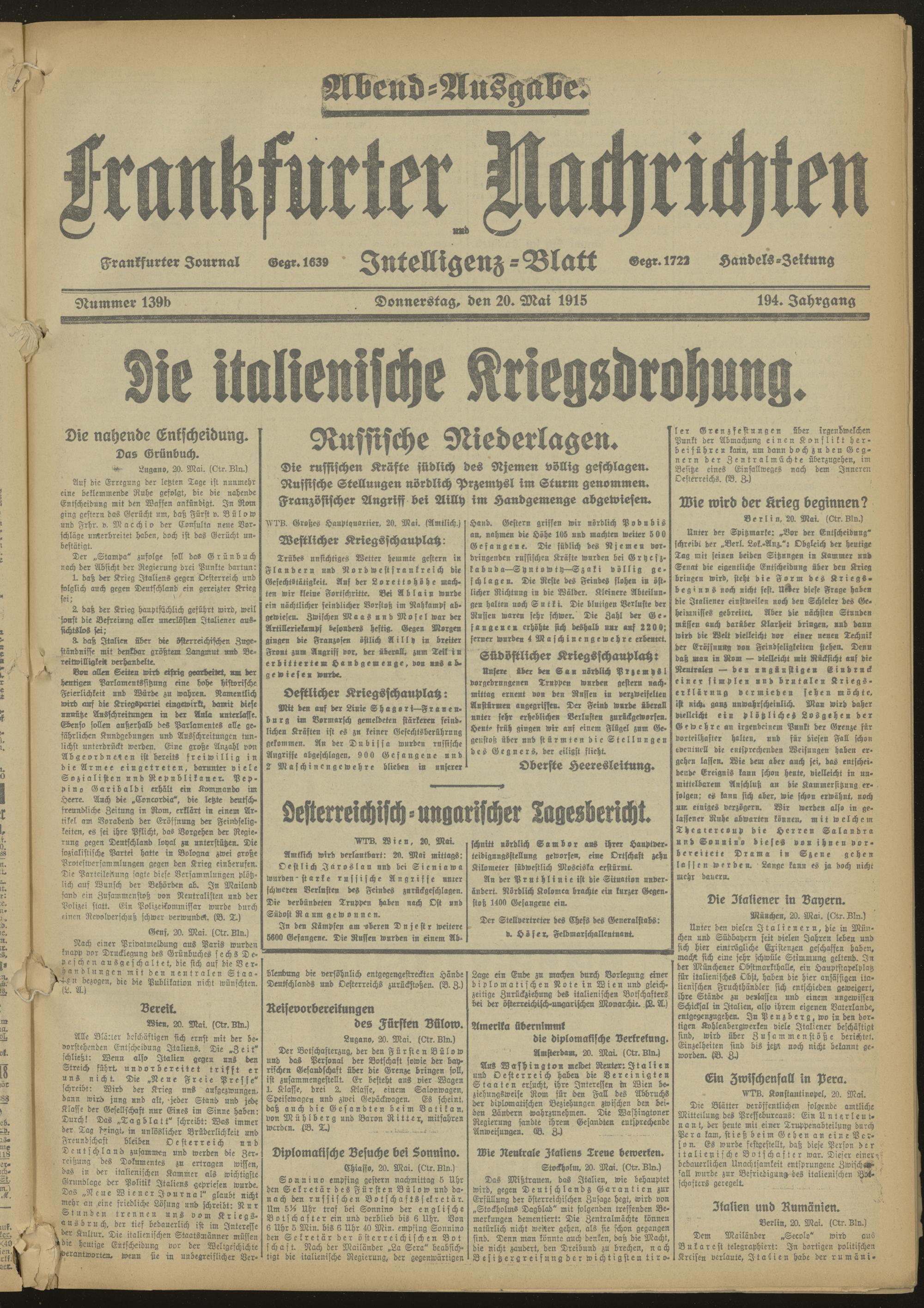 20.05.1915 Abend-Ausgabe = Nr. 139 b
