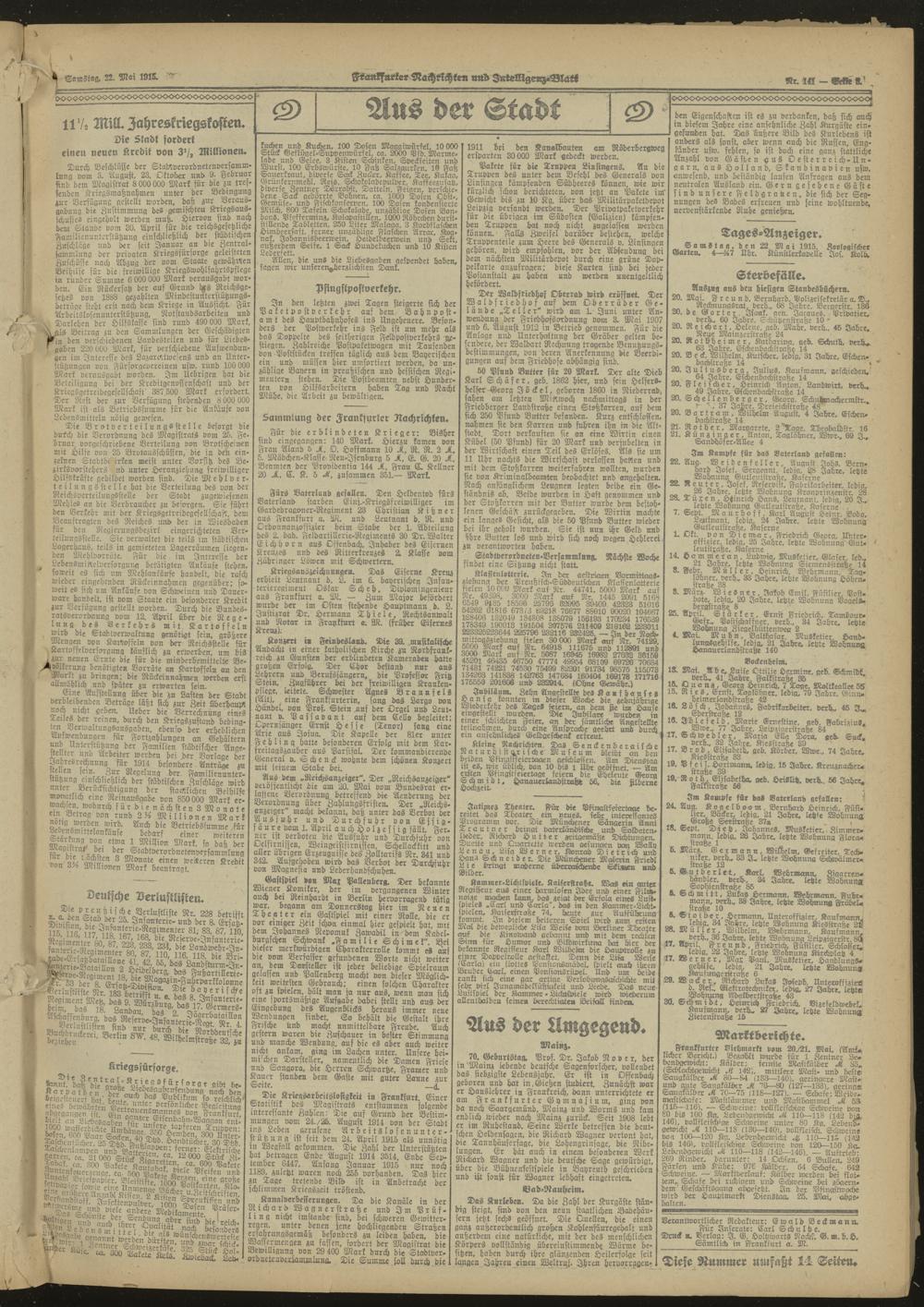 Frankfurter Nachrichten und Intelligenzblatt. 1914-1918