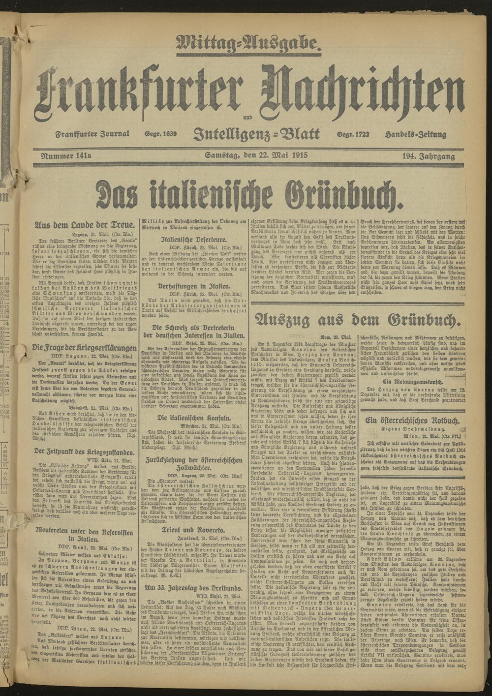 22.05.1915 Mittag-Ausgabe = Nr. 141 a