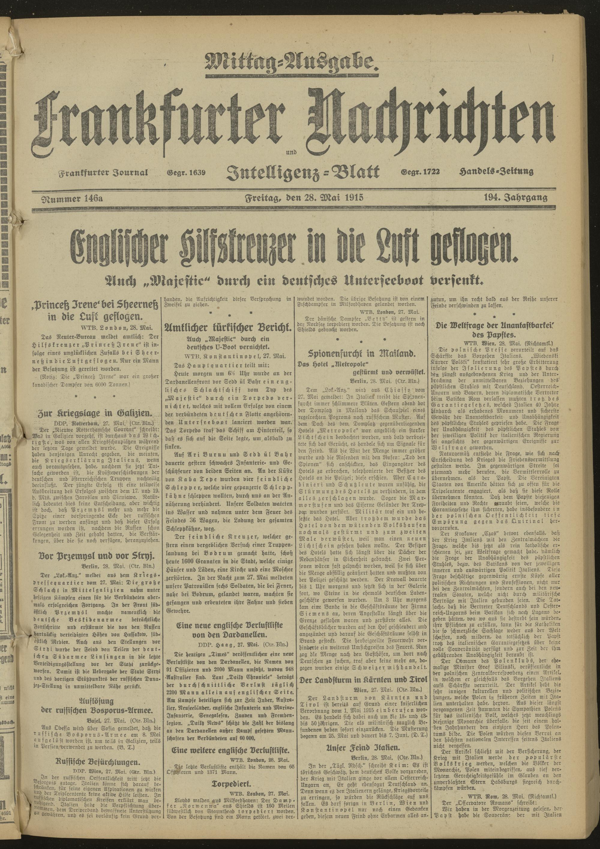 28.05.1915 Mittag-Ausgabe = Nr. 146 a