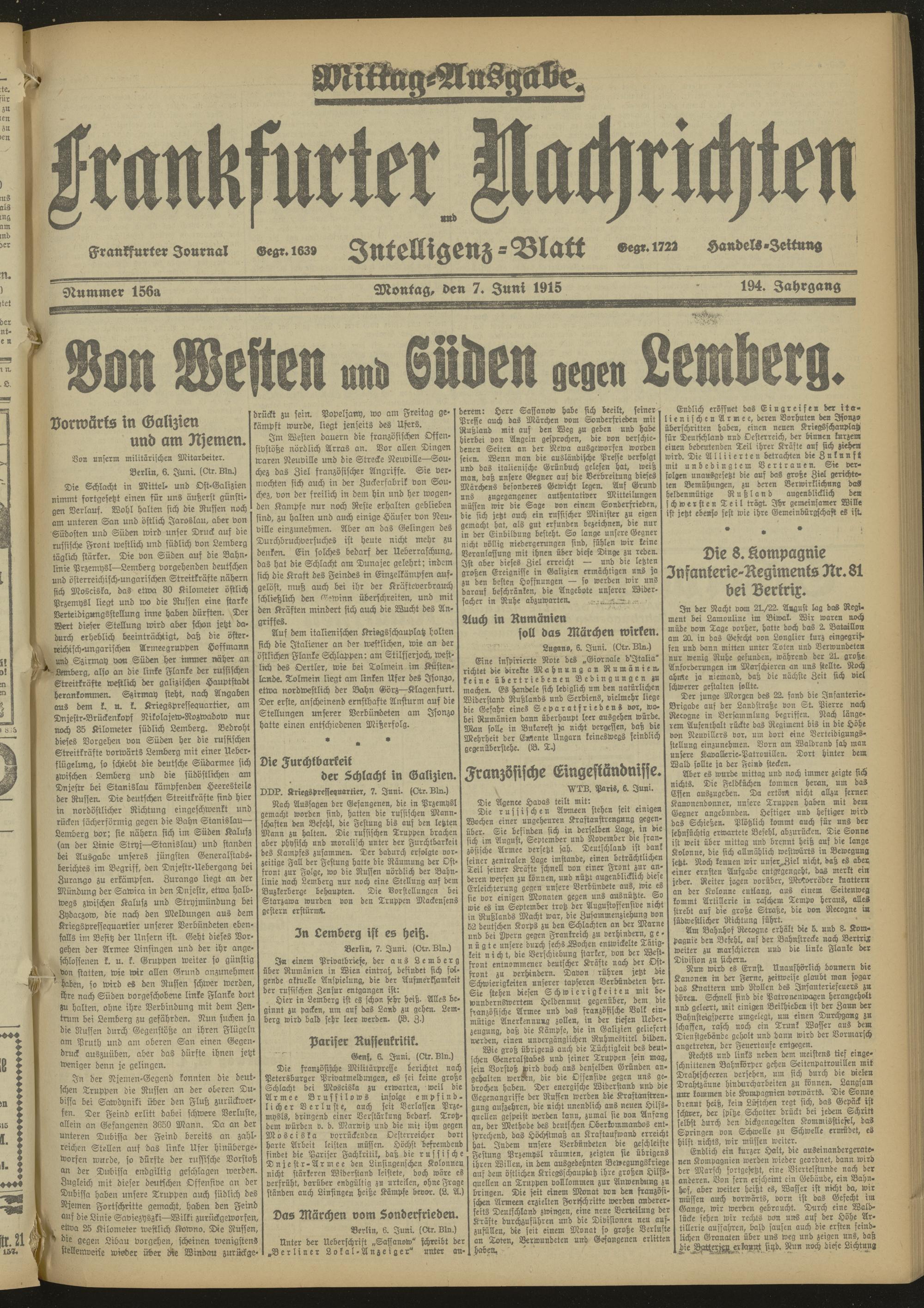 07.06.1915 Mittag-Ausgabe = Nr. 156 a