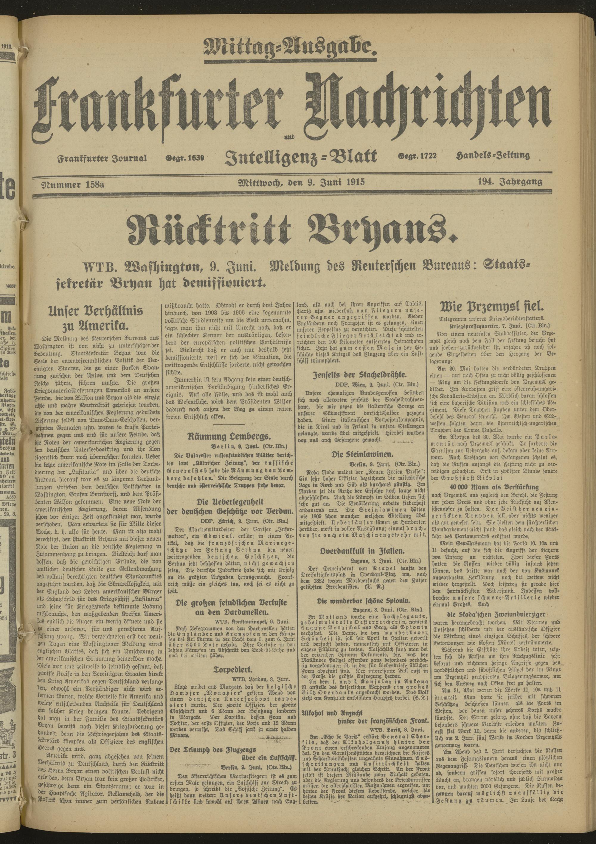 09.06.1915 Mittag-Ausgabe = Nr. 158 a