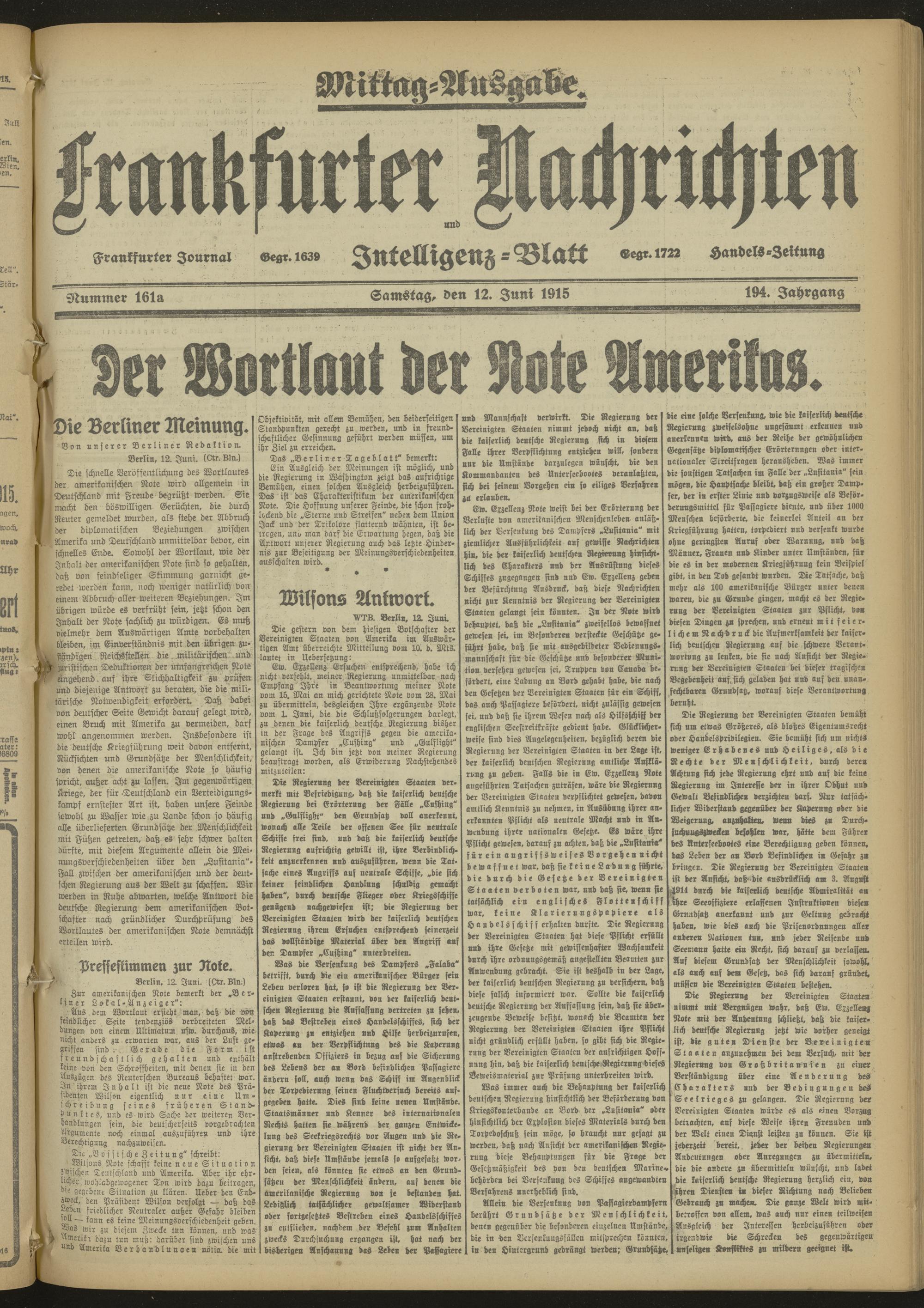 12.06.1915 Mittag-Ausgabe = Nr. 161 a