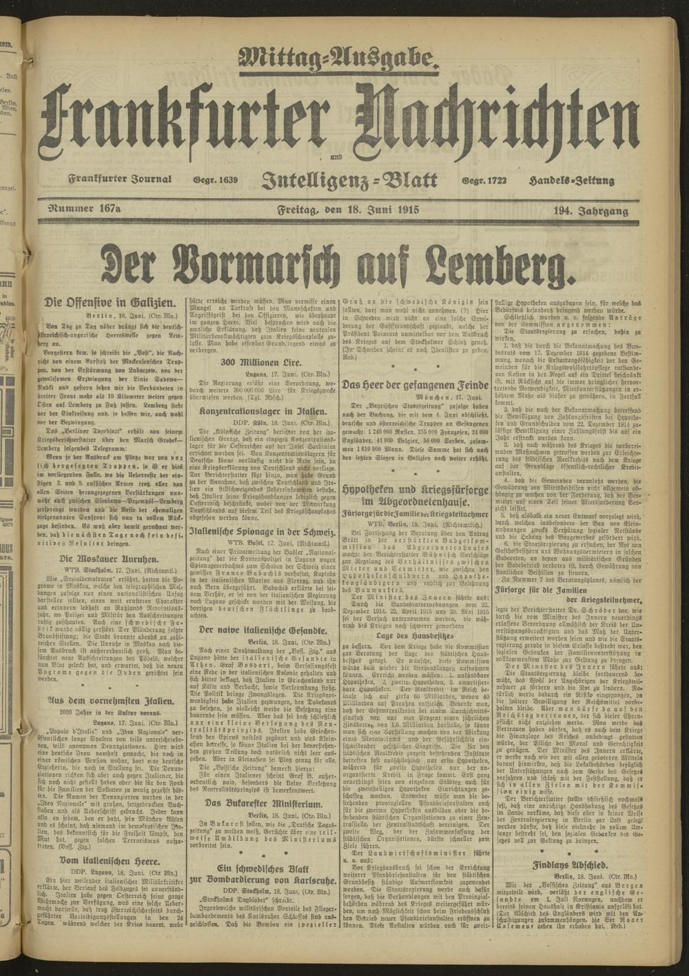 18.06.1915 Mittag-Ausgabe = Nr. 167 a