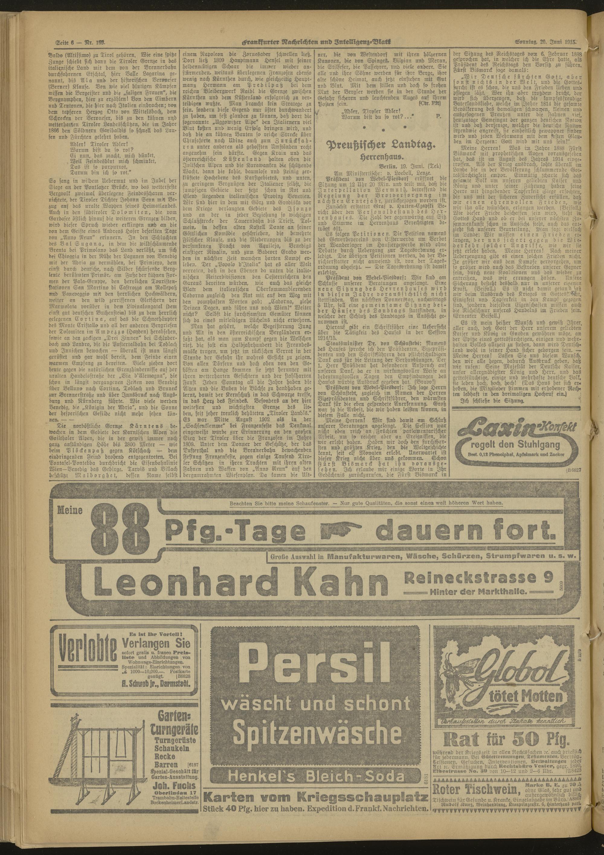 19.06.1915 Mittag-Ausgabe = Nr. 168 a