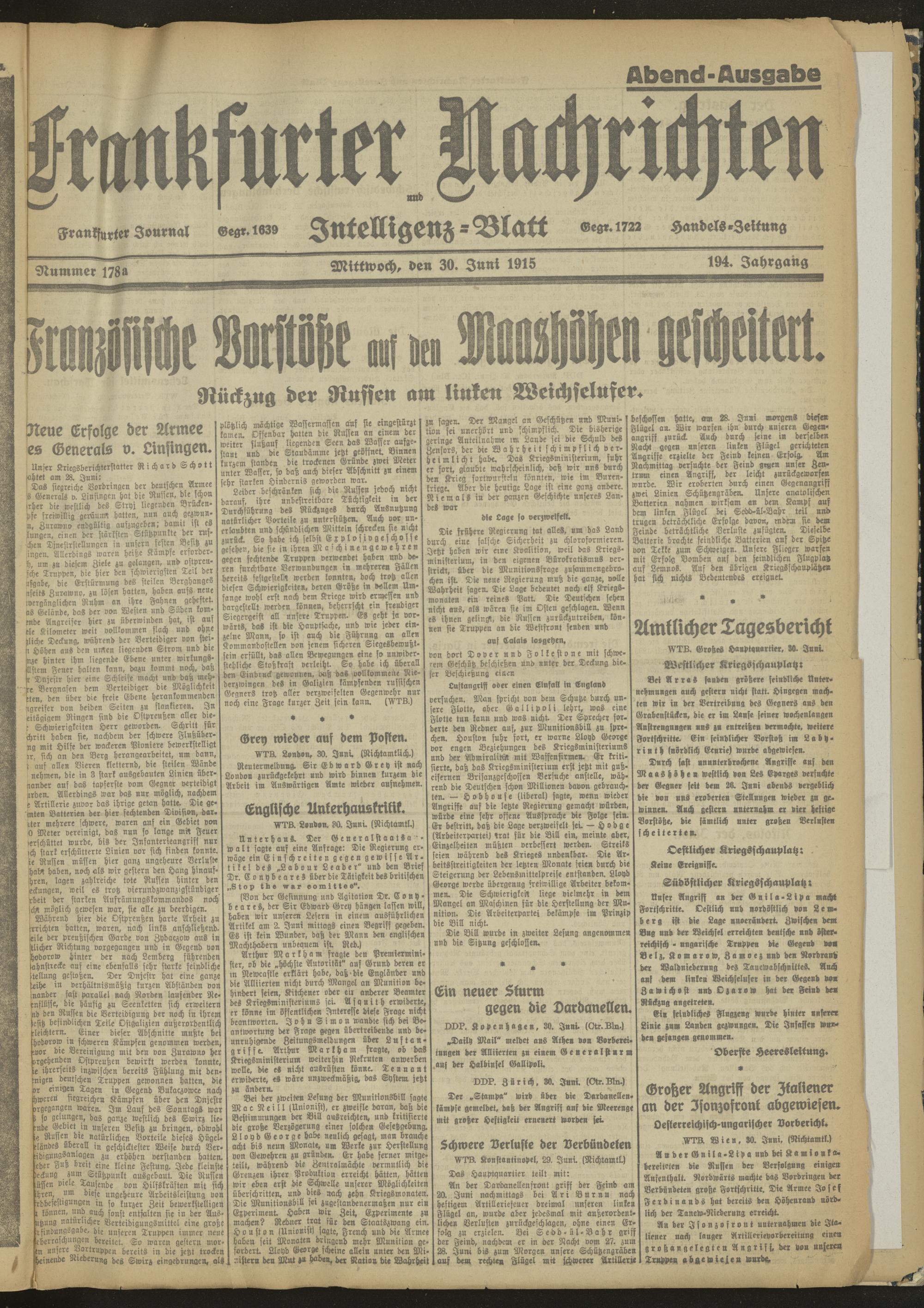 Frankfurter Nachrichten und Intelligenzblatt. 1914-1918