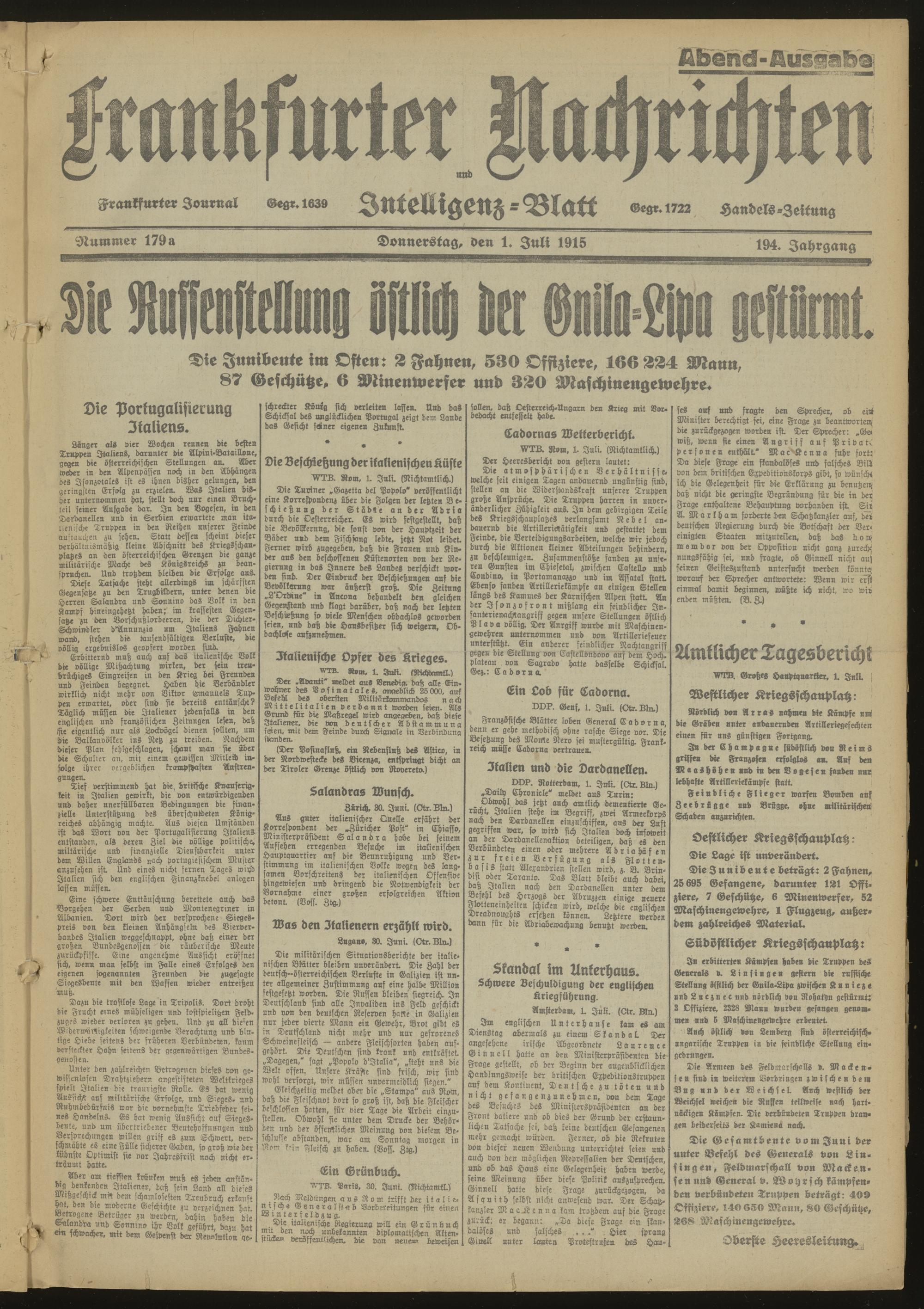 01.07.1915 Abend-Ausgabe = Nr. 179 a