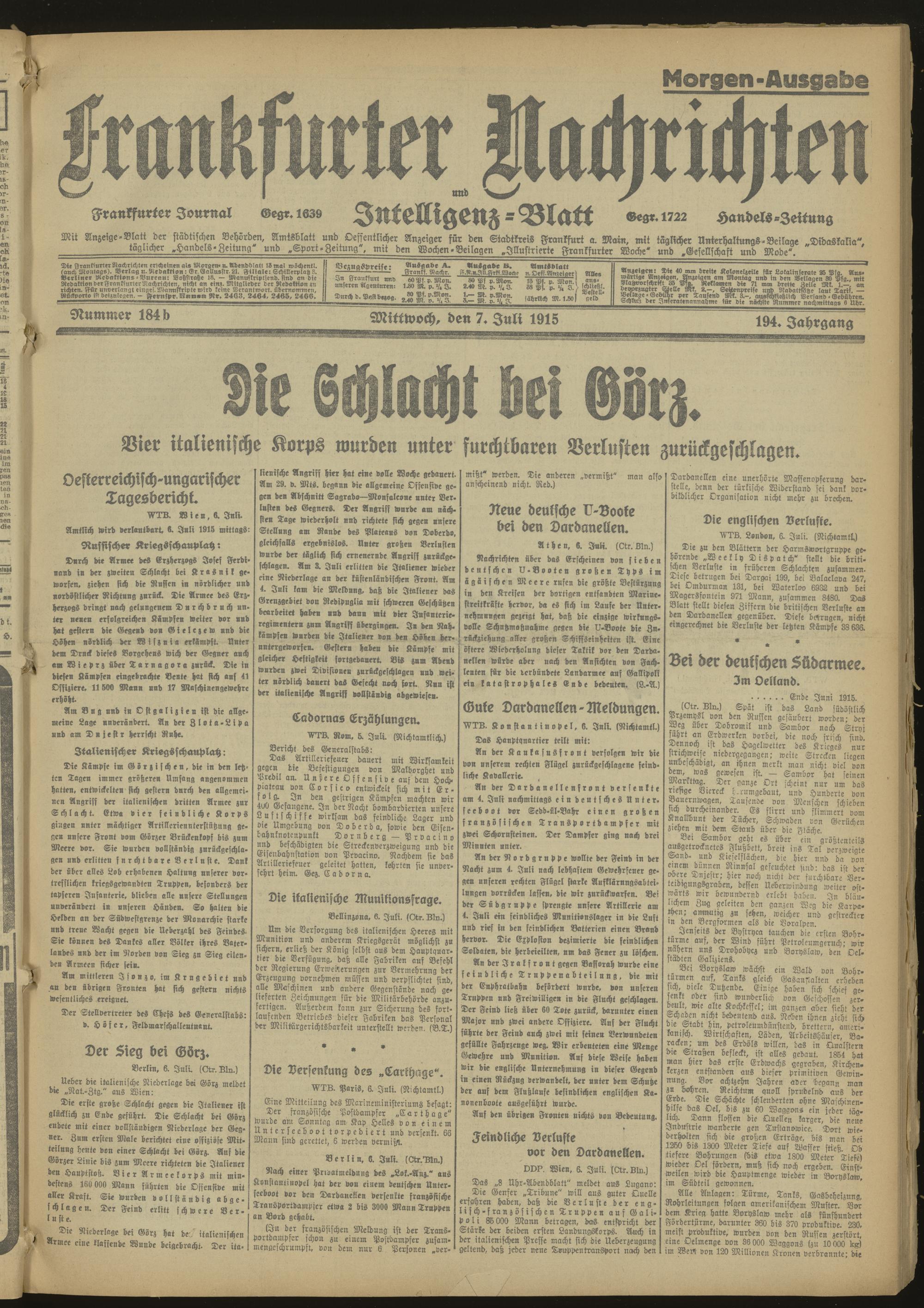 07.07.1915 Morgen-Ausgabe = Nr. 184 b