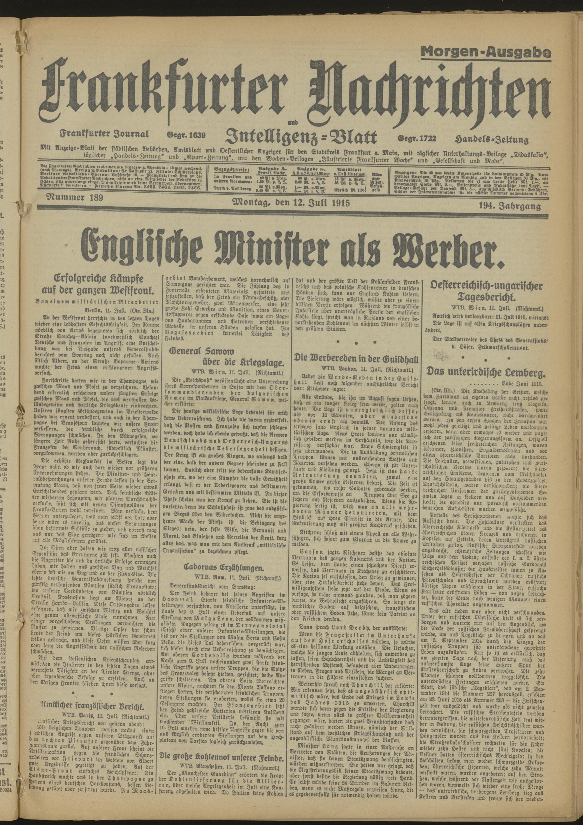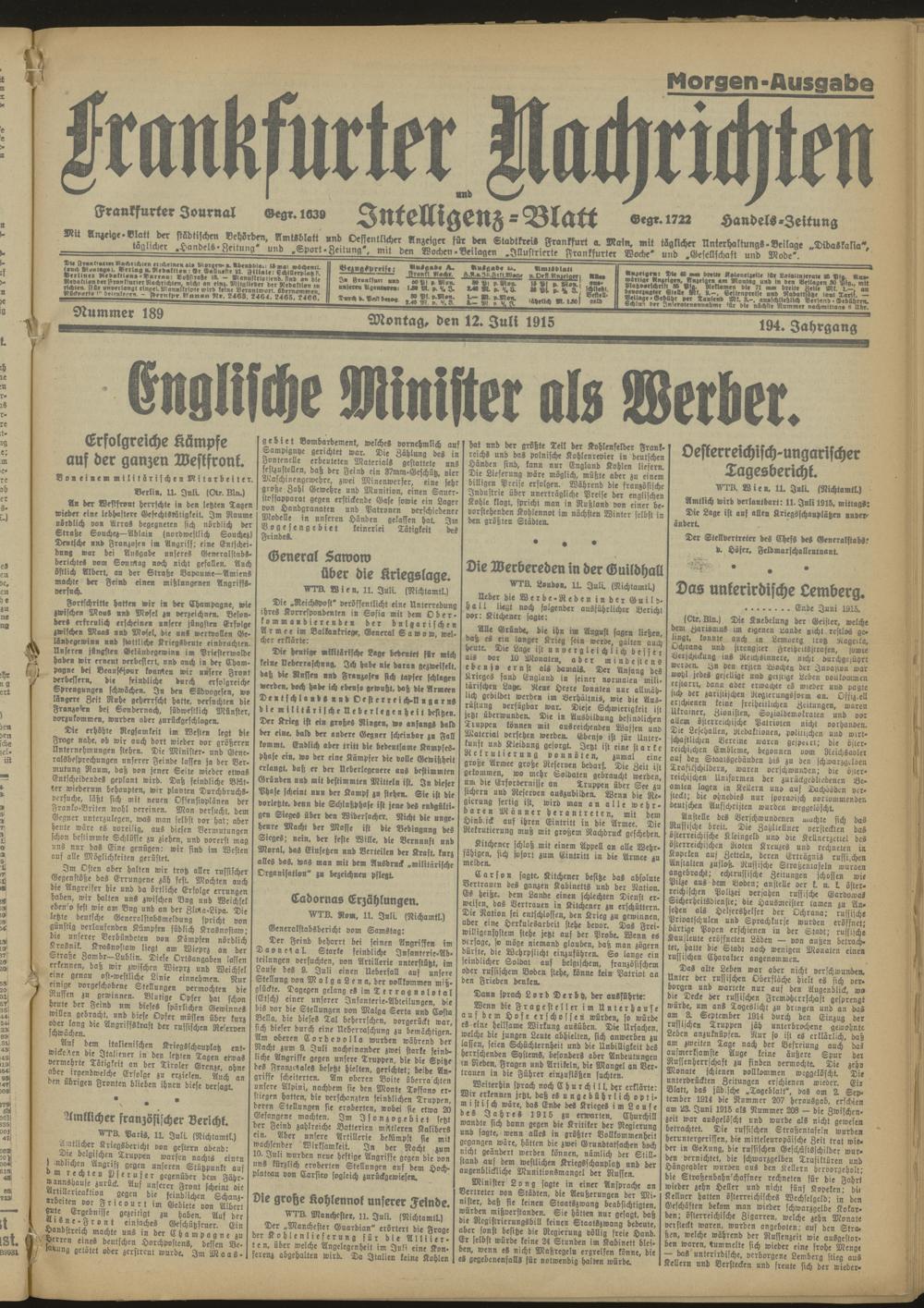 12.07.1915 Morgen-Ausgabe = Nr. 189