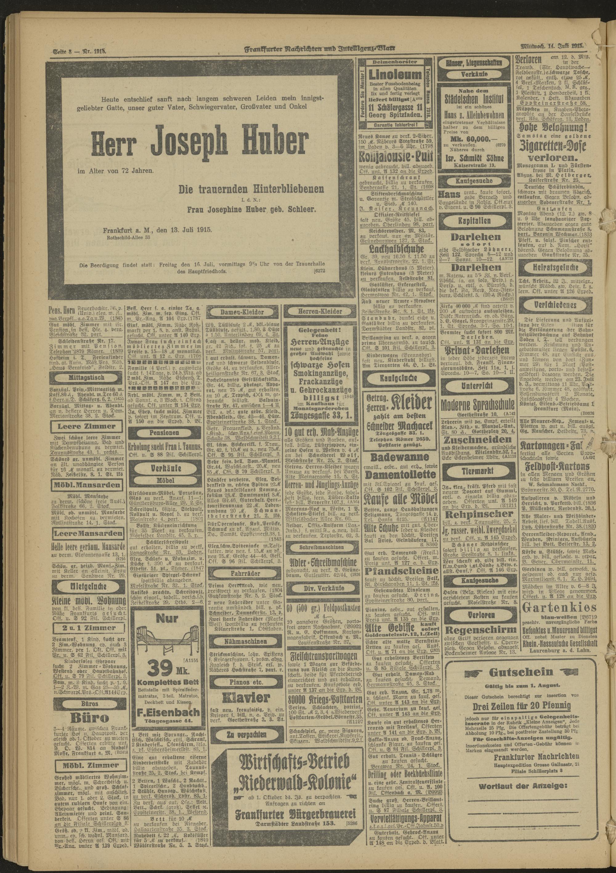 14.07.1915 Morgen-Ausgabe = Nr. 191 b