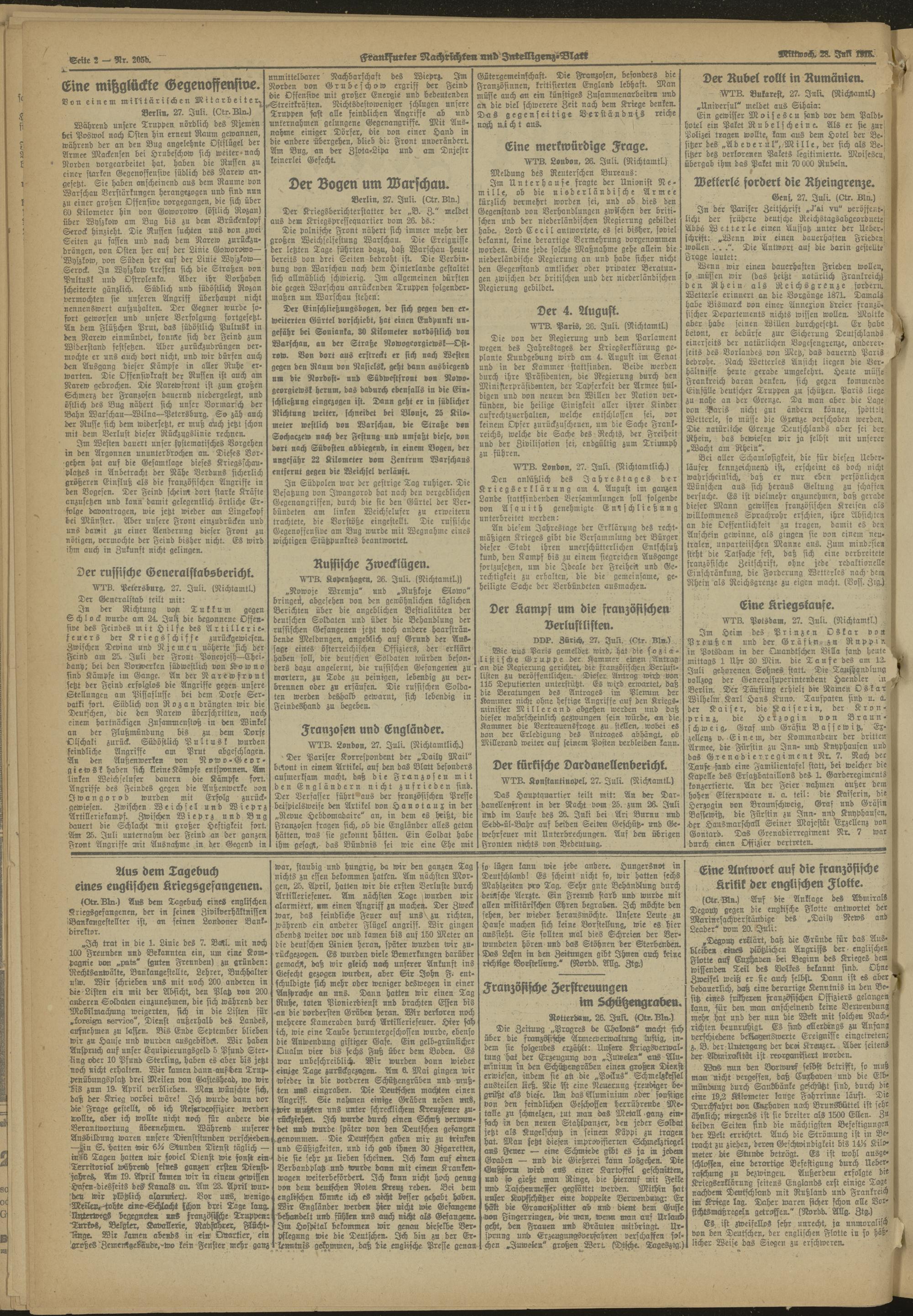 28.07.1915 Morgen-Ausgabe = Nr. 205 b