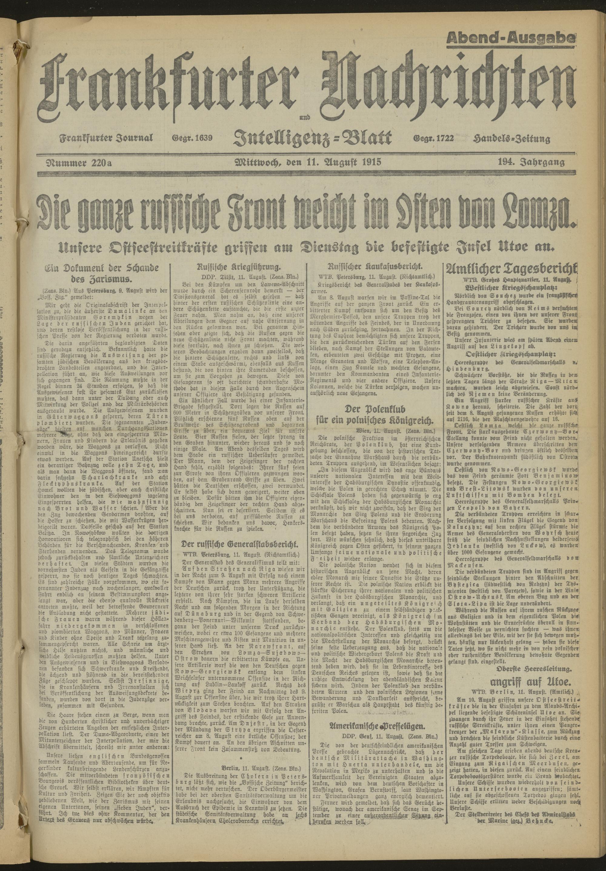 11.08.1915 Abend-Ausgabe = Nr. 220a