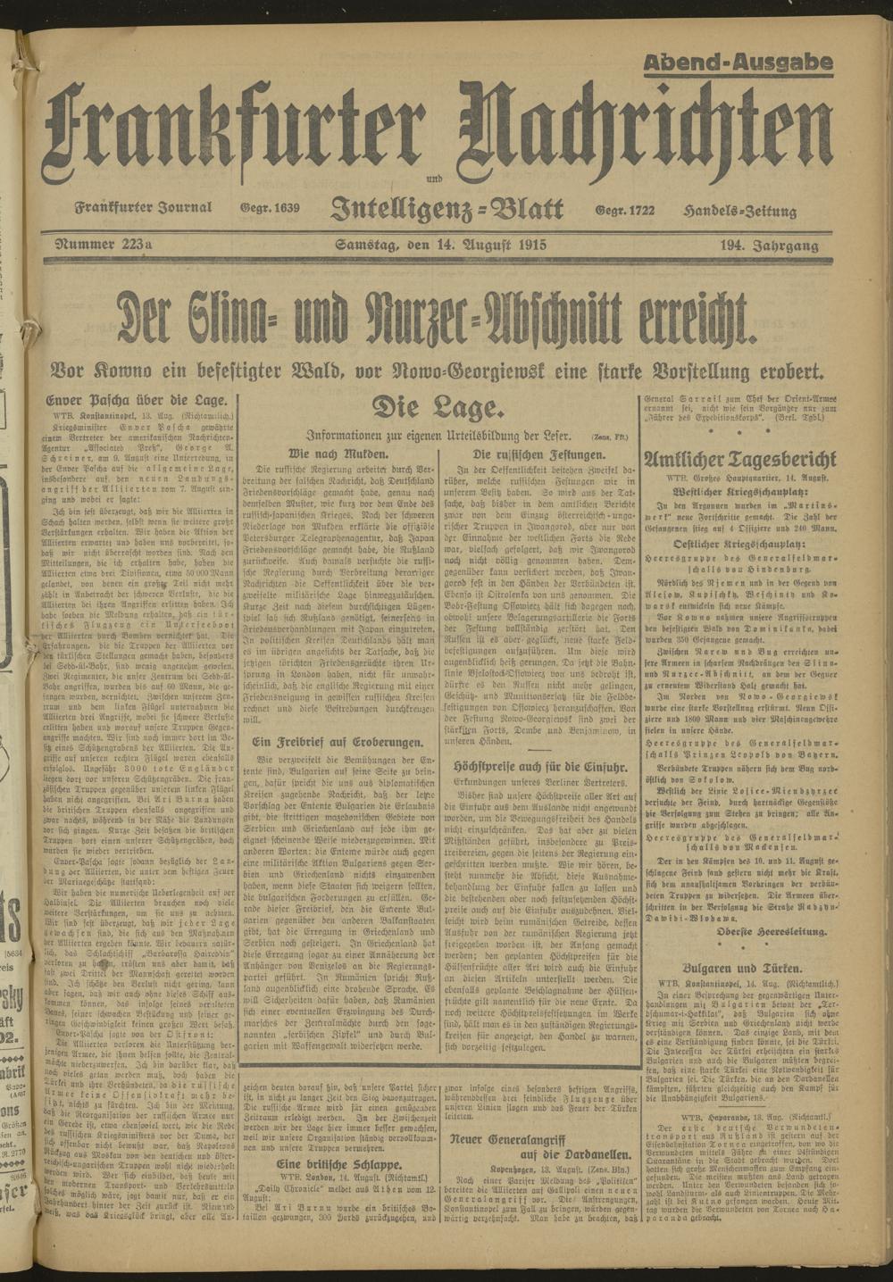 14.08.1915 Abend-Ausgabe = Nr. 223a