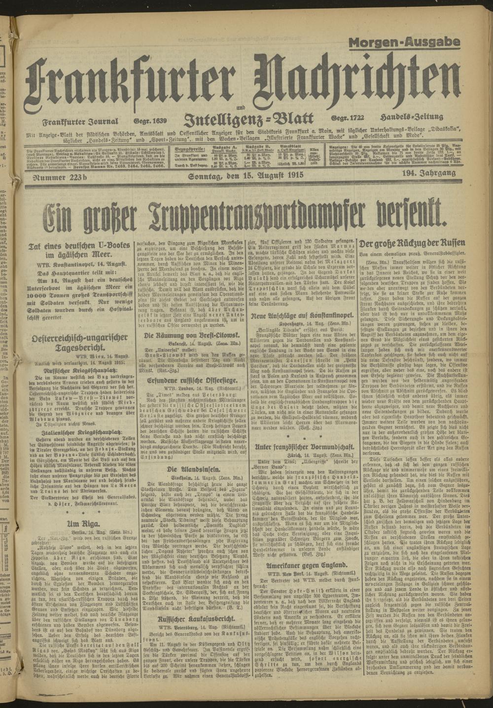 15.08.1915 Morgen-Ausgabe= Nr. 223 b