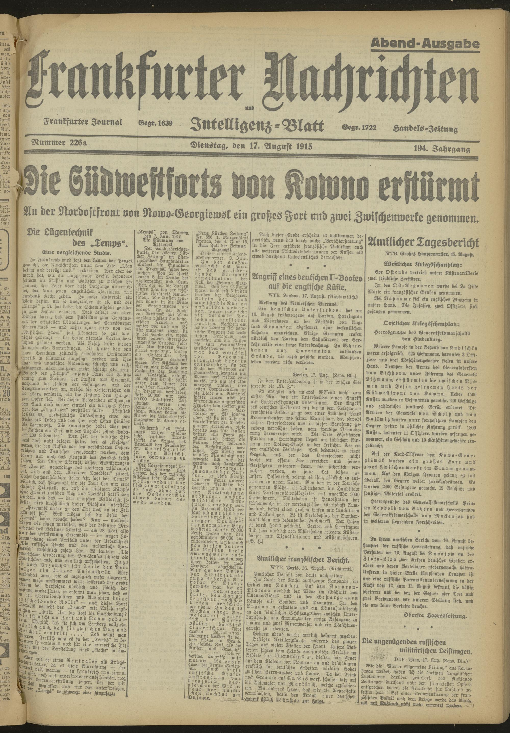 17.08.1915 Abend-Ausgabe = Nr. 226a