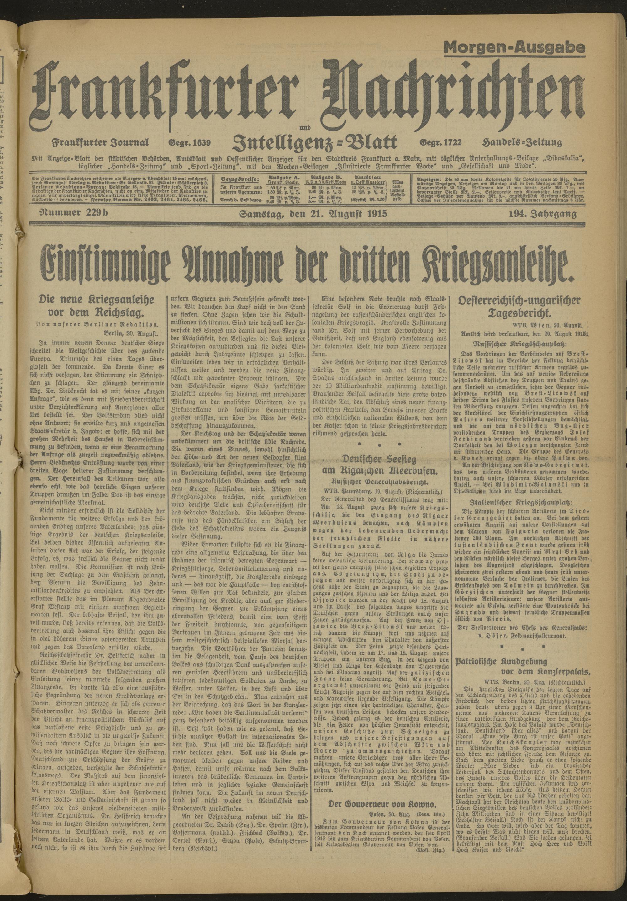 21.08.1915 Morgen-Ausgabe= Nr. 229 b