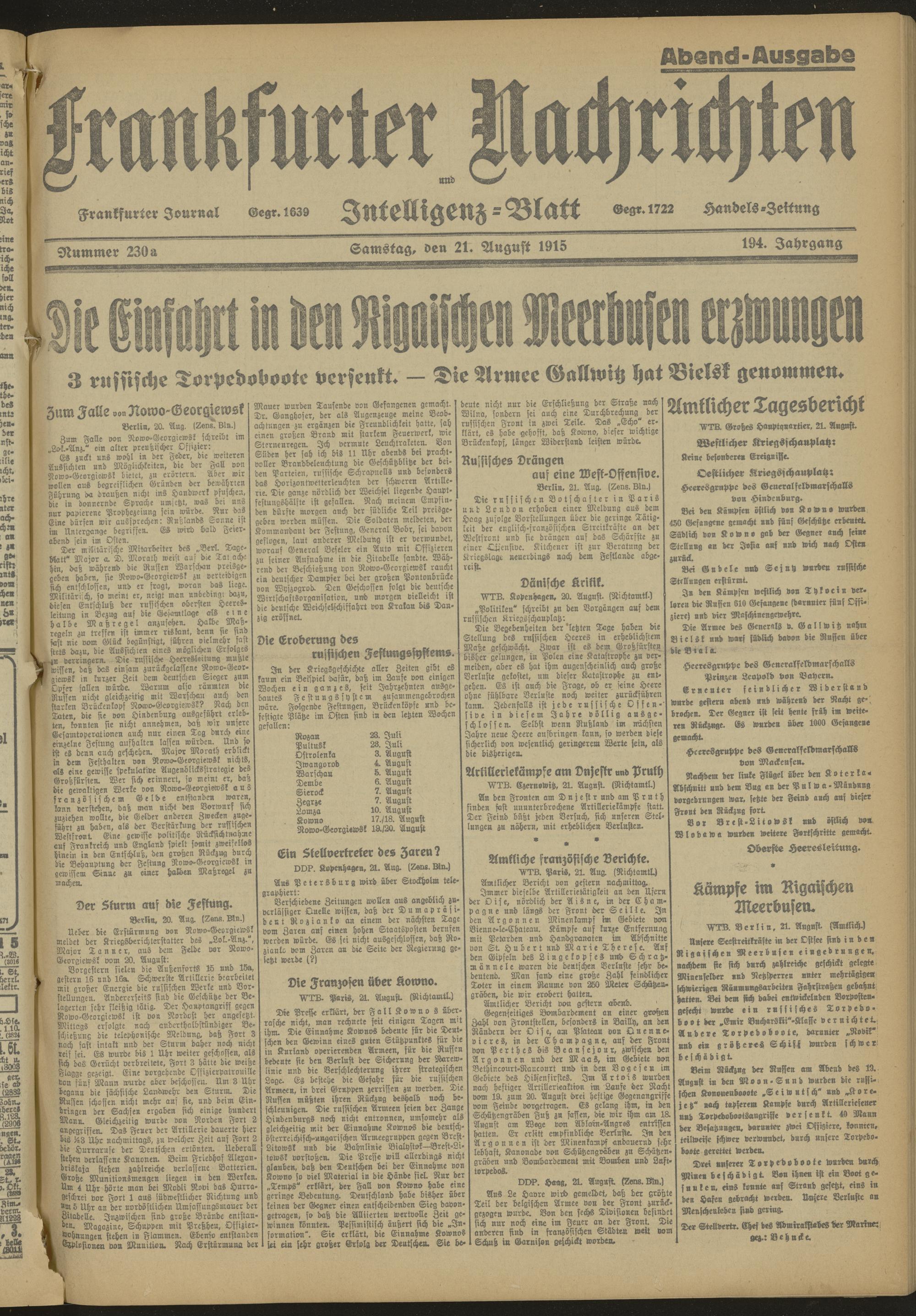21.08.1915 Abend-Ausgabe = Nr. 230 a